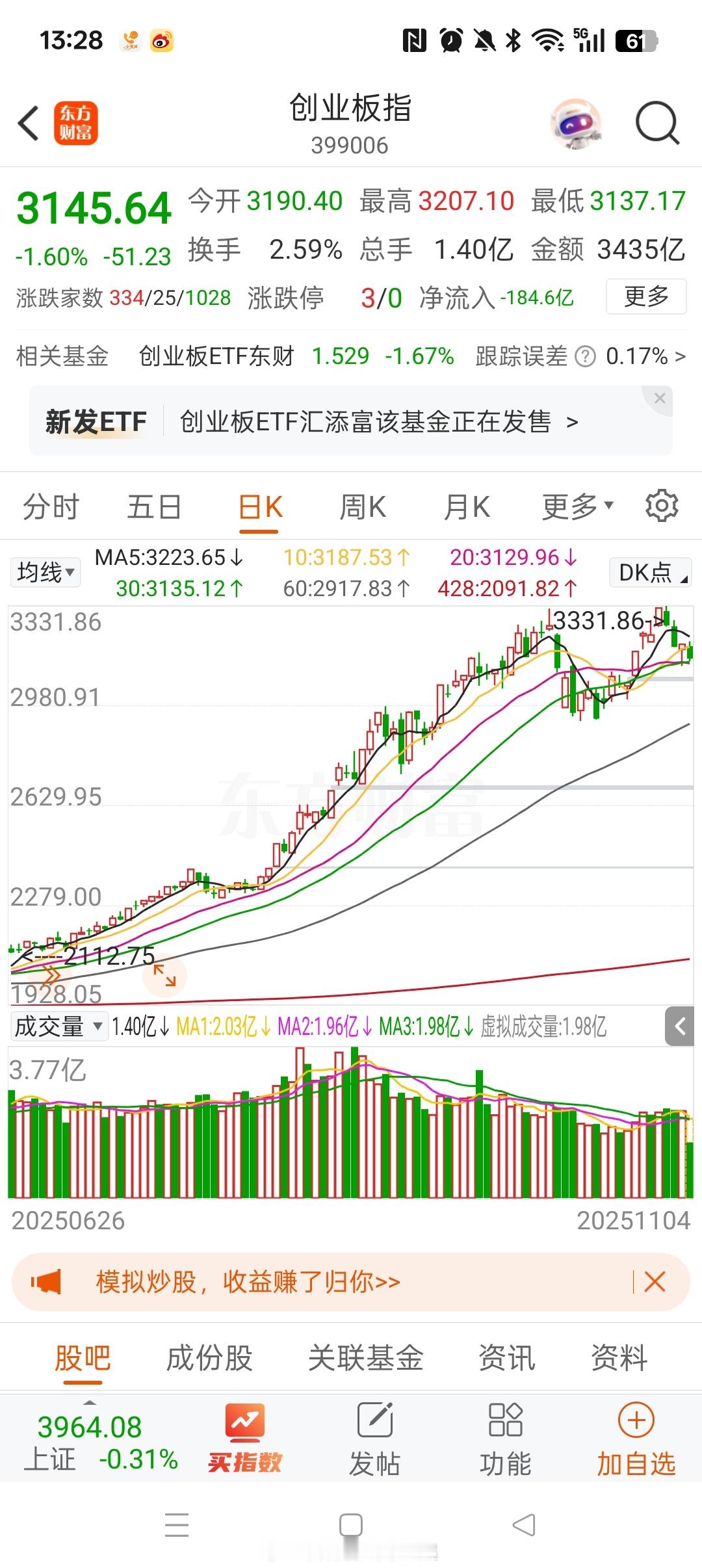 目前阶段,市场热度,不要看上证指数,看创业板就好。