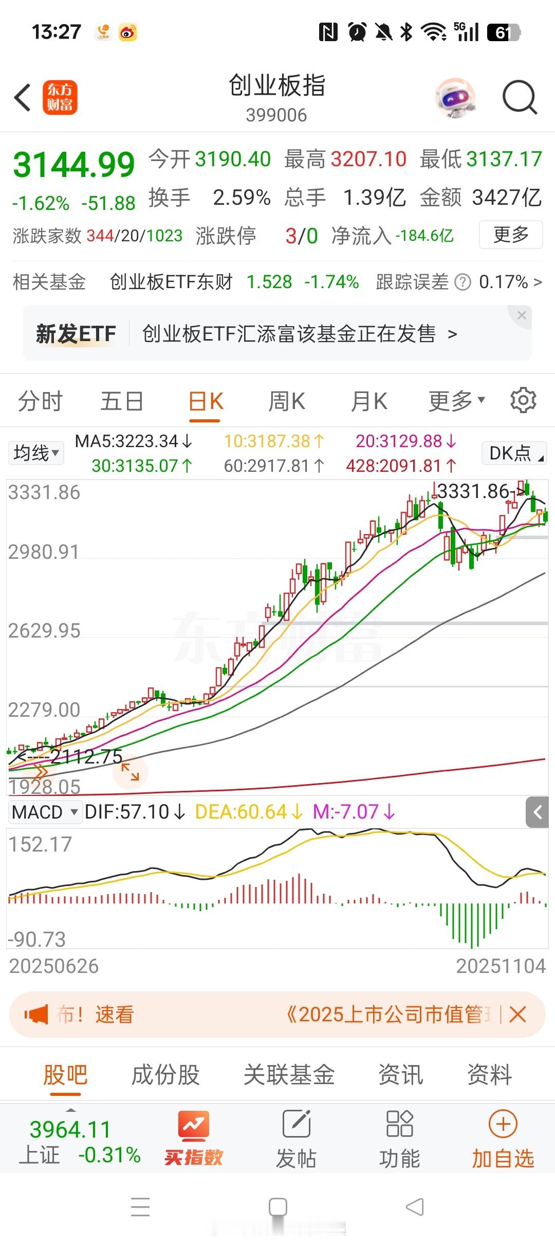 创业板顶背离明不明显?
