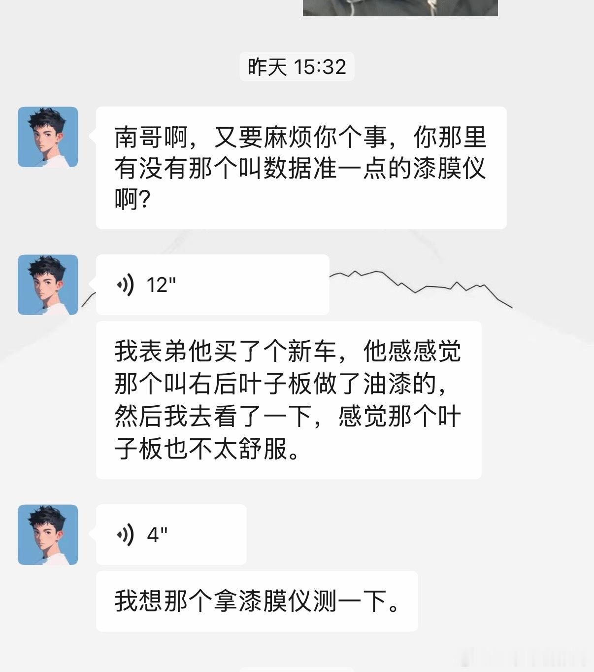 看见了无痕修复的印子,问我借了漆膜仪