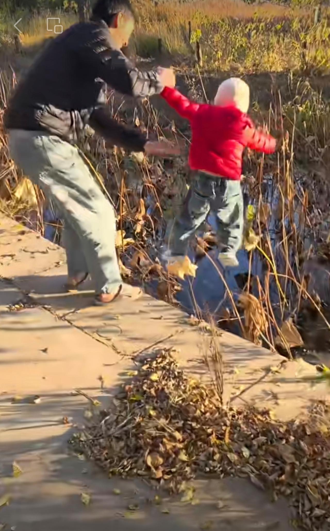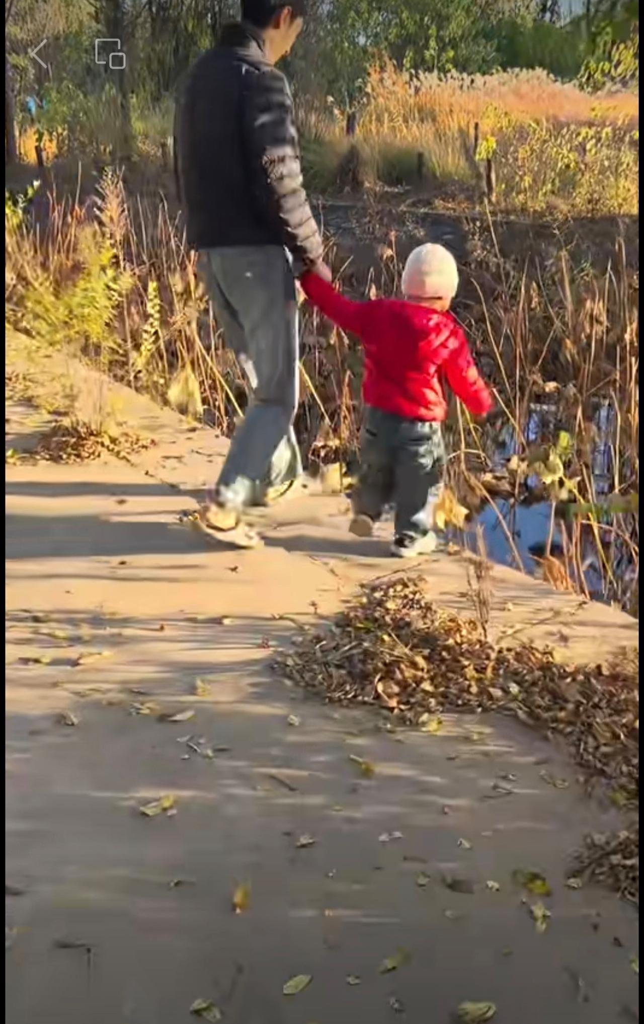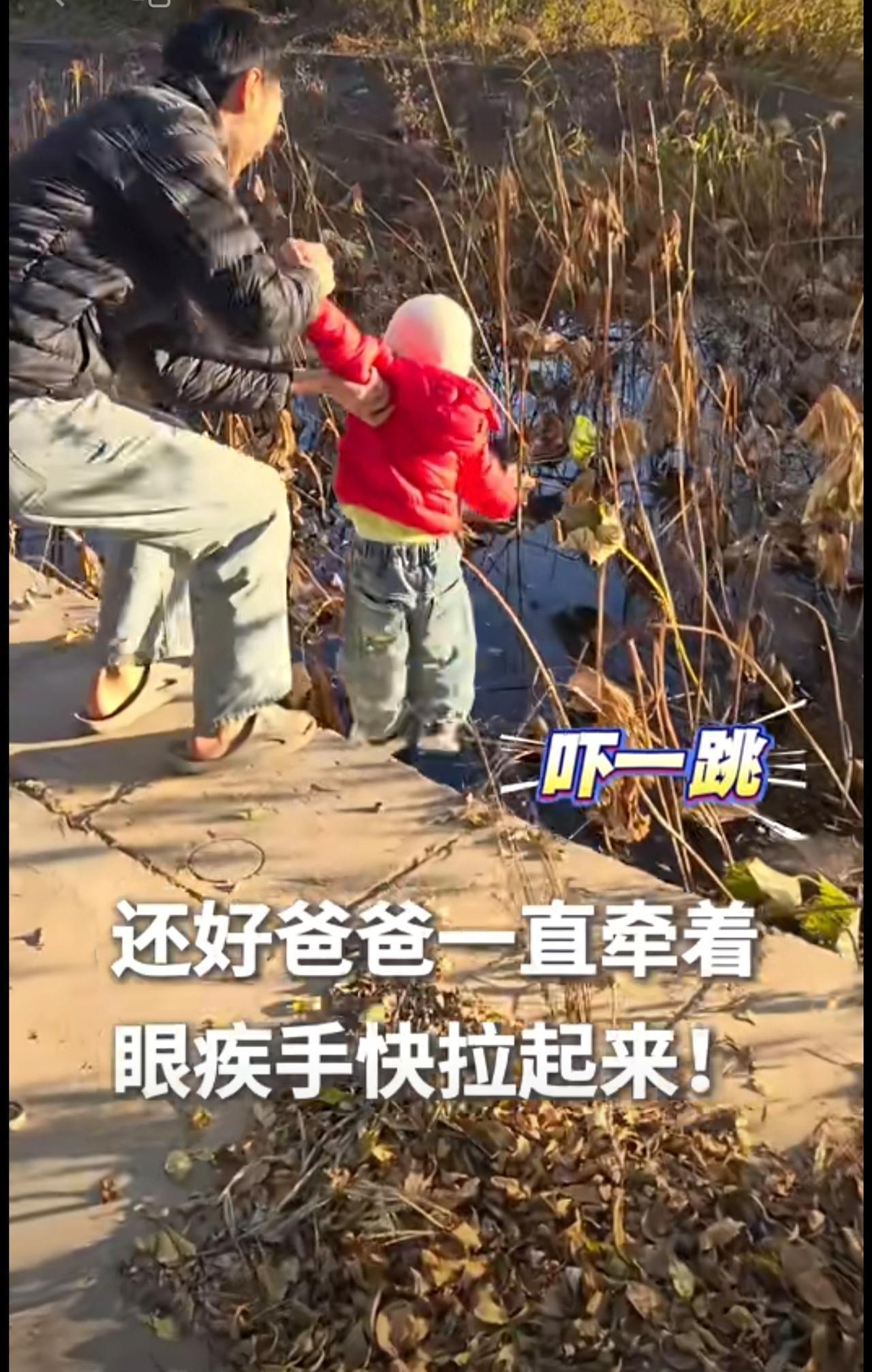 宝宝拉着爸爸的手往前走,到河边时,突然就直接往水里蹦…“理解了为什么孩子3岁不能离手!”