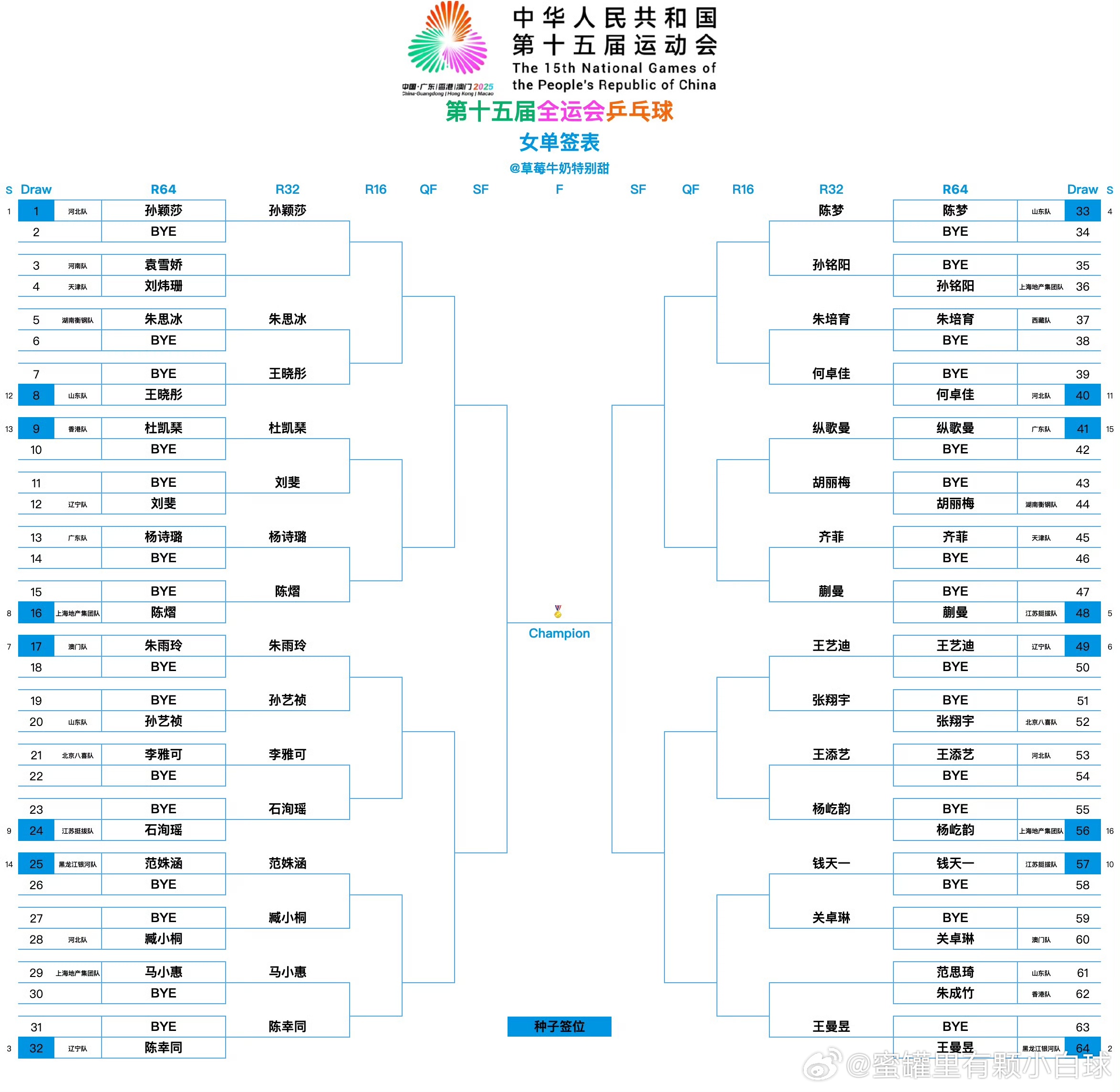 全运会乒乓球女单签表莎莎首轮轮空,次轮很有可能碰到刘炜珊~