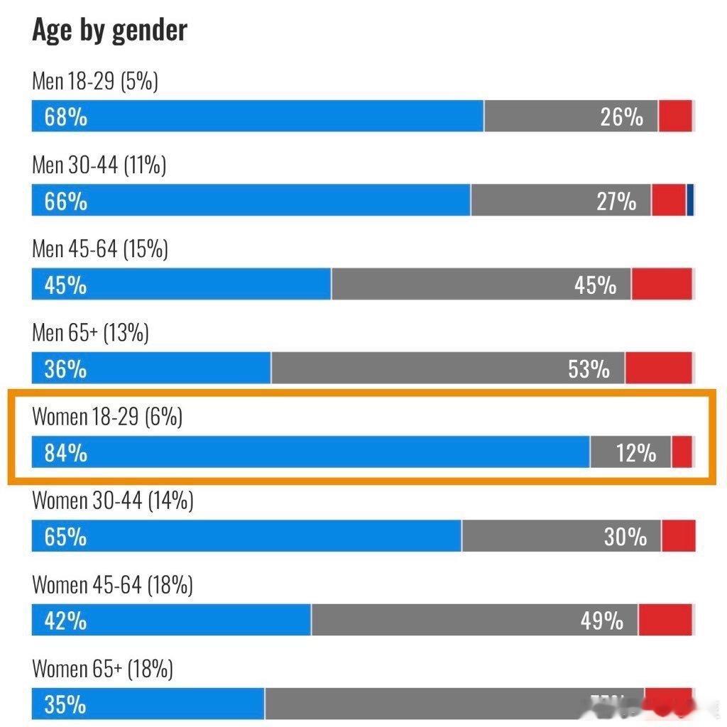 纽约市长选举,年轻女性(18-29岁)对Mamdani的支持率最高:84%