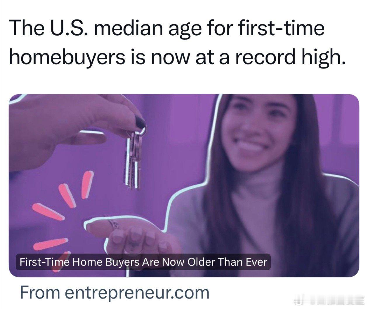 美国首次购房者平均年龄,2025年上升到四十岁,历史新高(2020以前,非常稳定地保持在30-31岁)