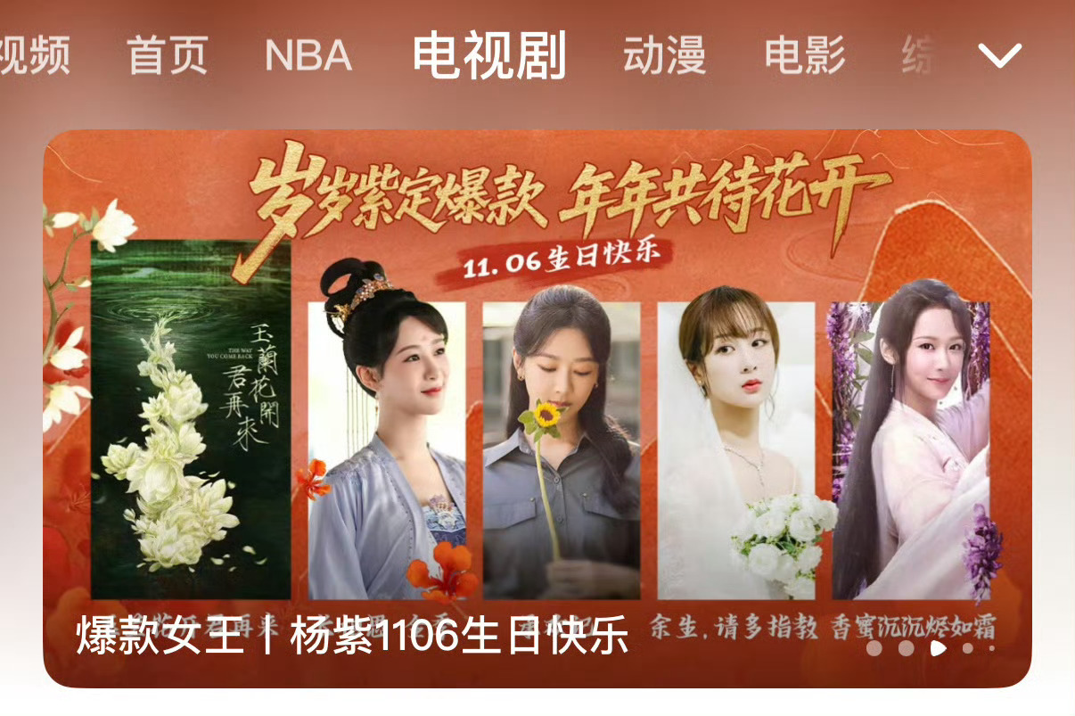 杨紫生日,腾讯视频给杨紫开了个专栏“爆款女王”![哆啦A夢吃驚][哆啦A夢吃驚]