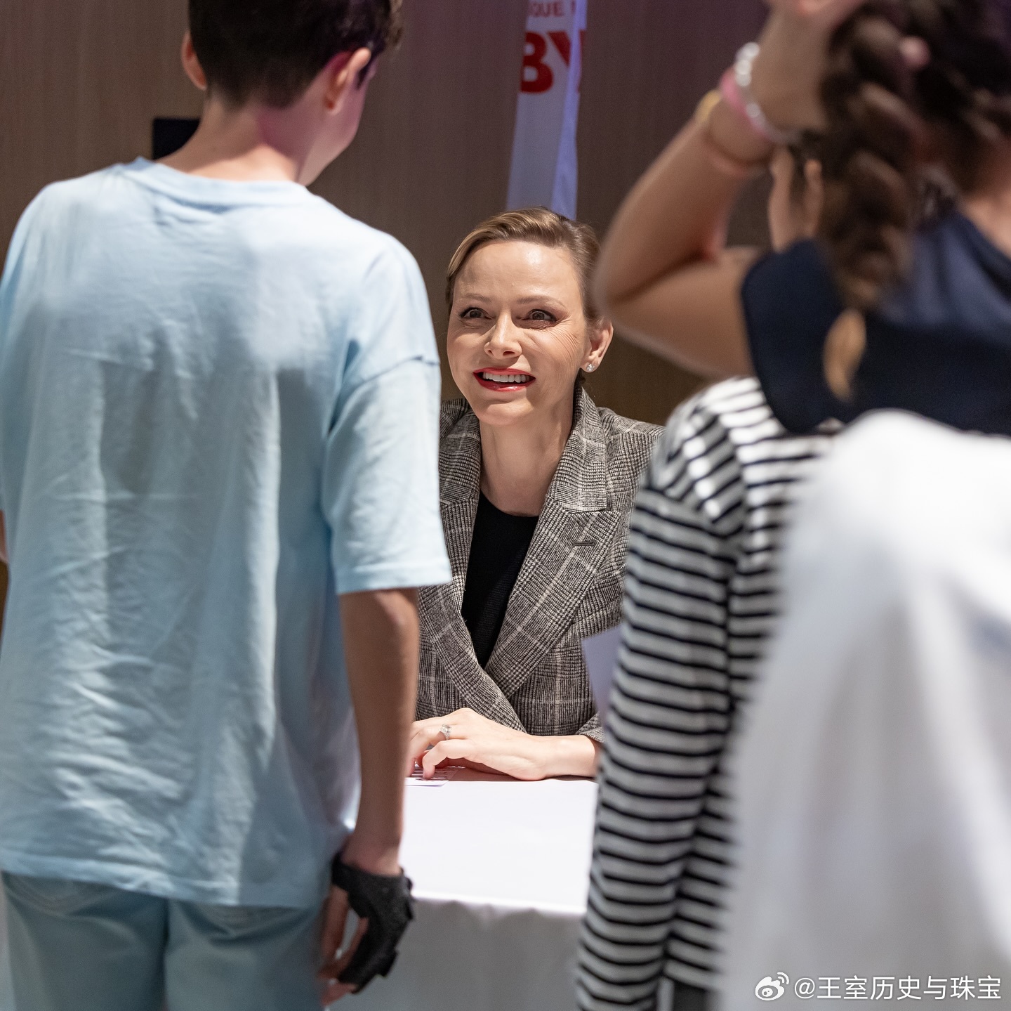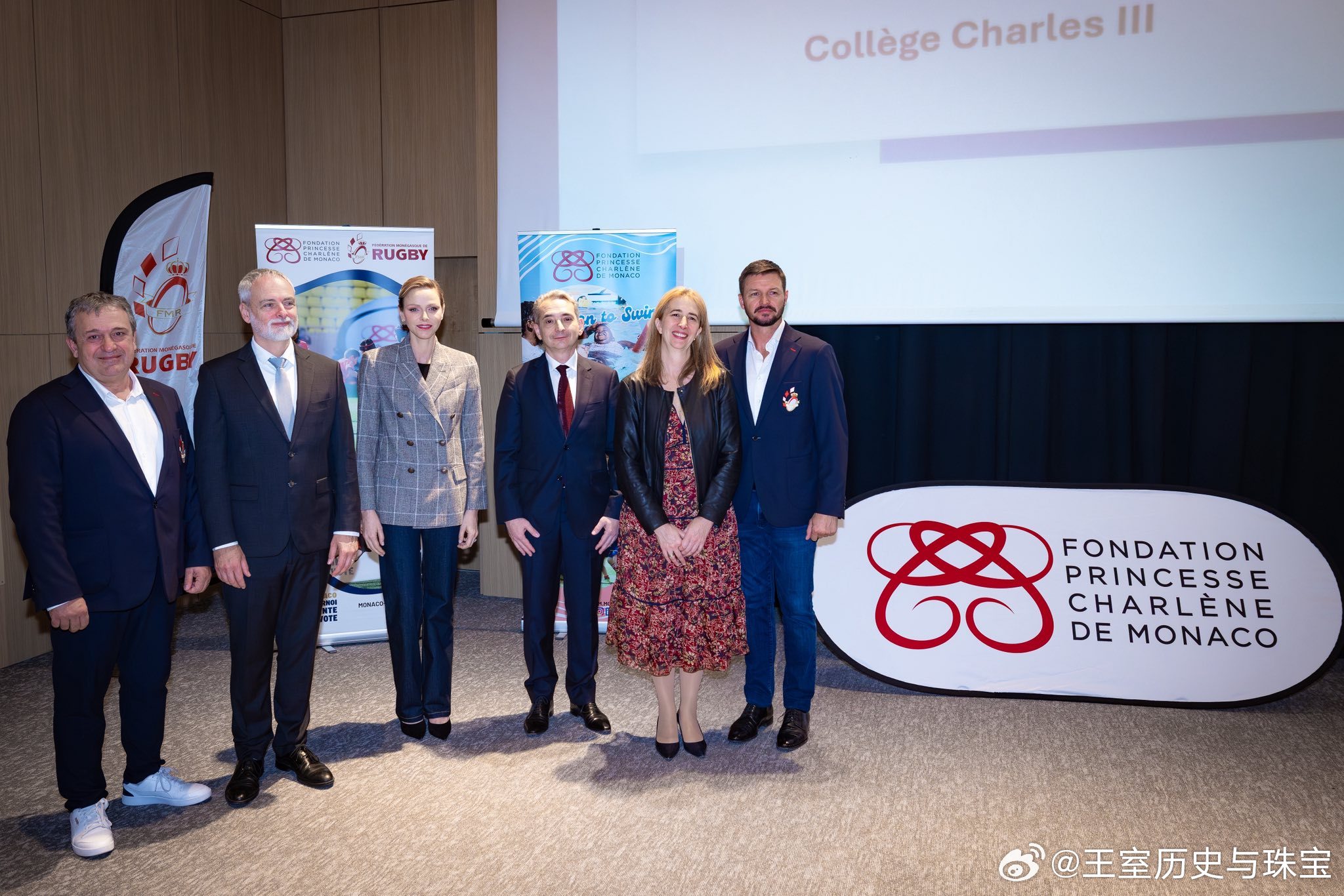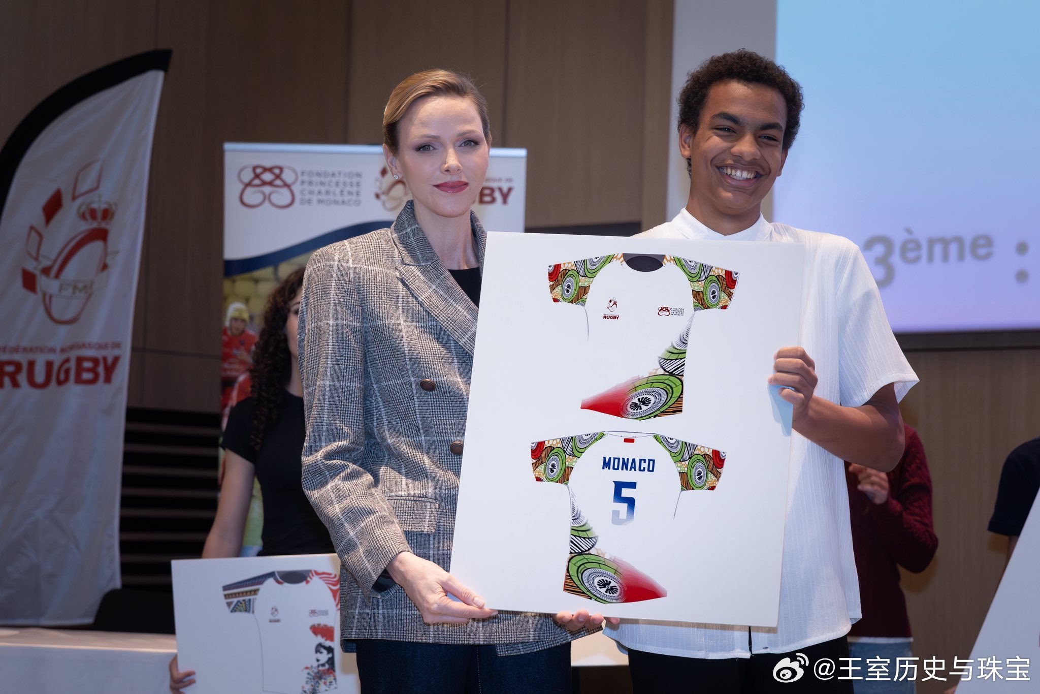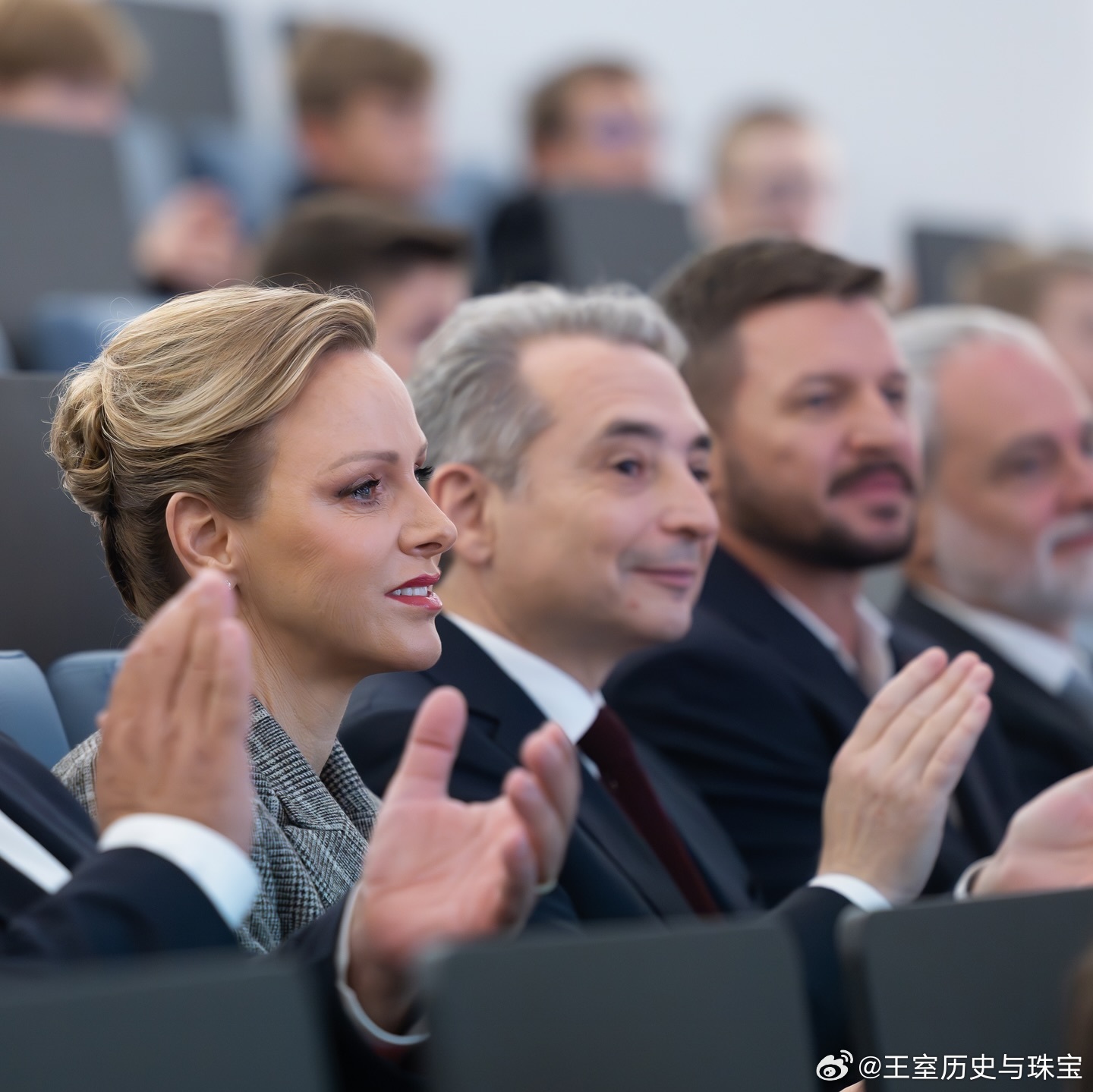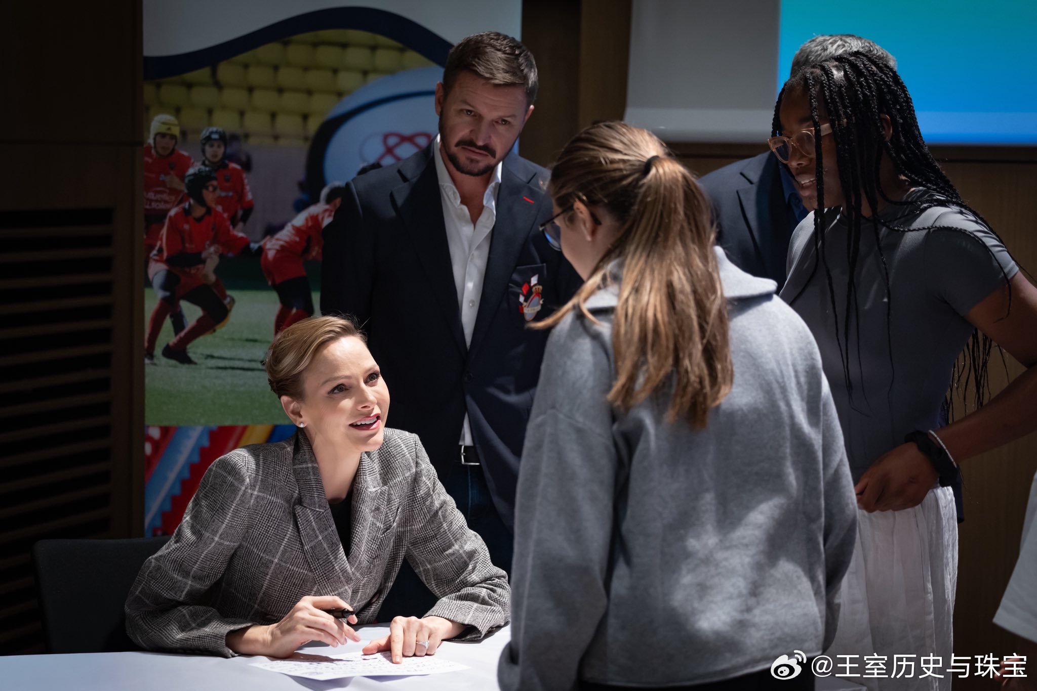 新闻 2025.11.5 摩纳哥亲王妃查伦妮访问查理三世学院,参加第二届学生设计橄榄球队队服设计比赛,这是查伦妮名下基金会和摩纳哥橄榄球联合会主办的赛事,查伦妮的格纹双排扣外套来自Brunello Cucinelli。PS:查伦妮本身头发就不长还愿意做精致盘发,让其他万年披发的贵圈人咋整哦[二哈]。