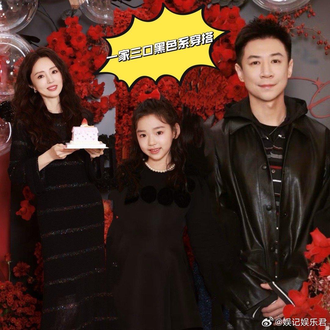 董璇生日,一家三口都是黑色系穿搭,董璇46岁依旧明艳动人,小酒窝穿着黑色丝绒群,头戴红色蝴蝶结,古灵精怪的,张维伊也清爽帅气,一家三口很幸福呢董璇 张维伊