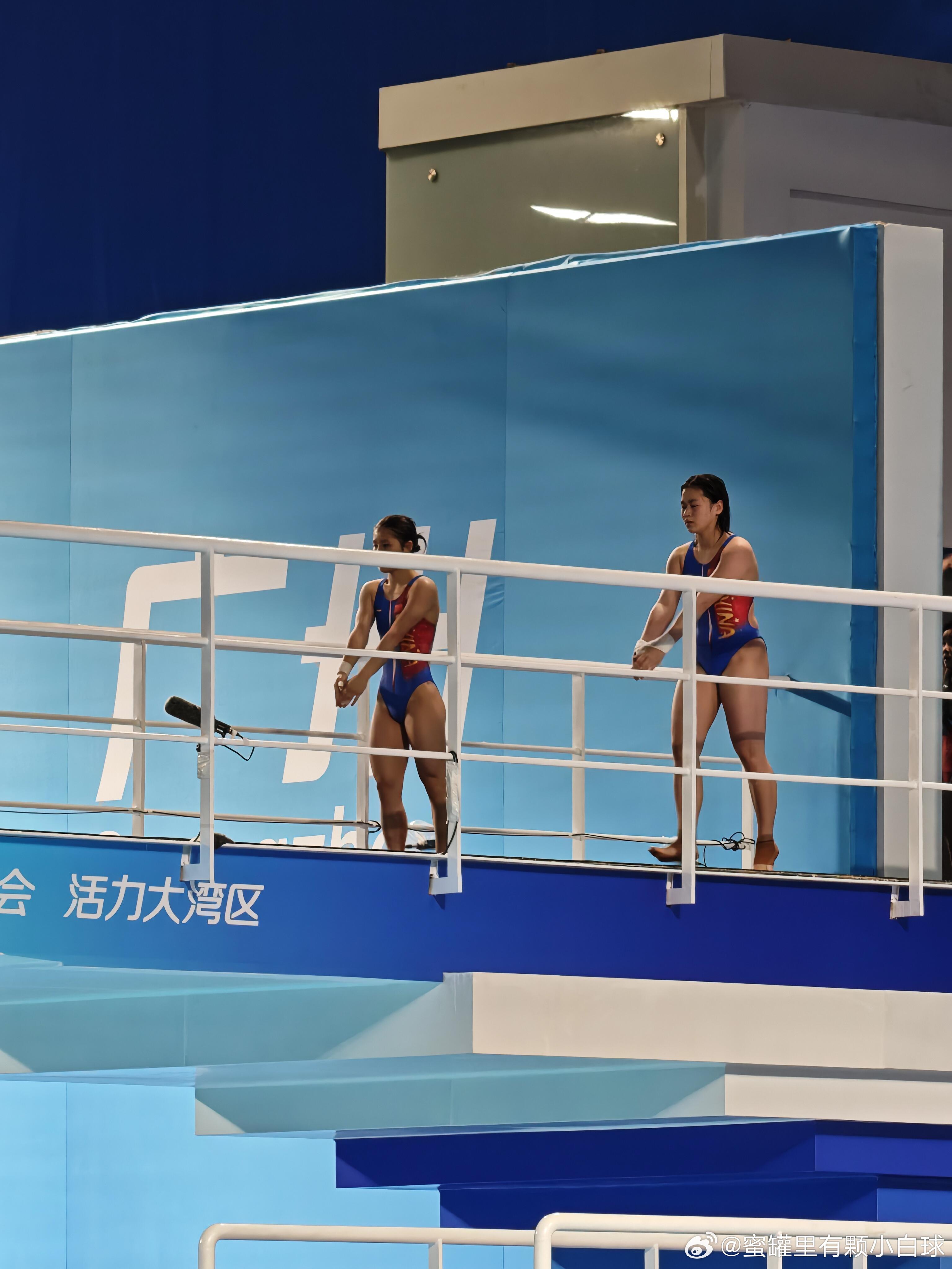 全红婵与陈芋汐比心互动预赛圆满结束!!接下来就是下午决赛啦,可爱的婵宝加油~