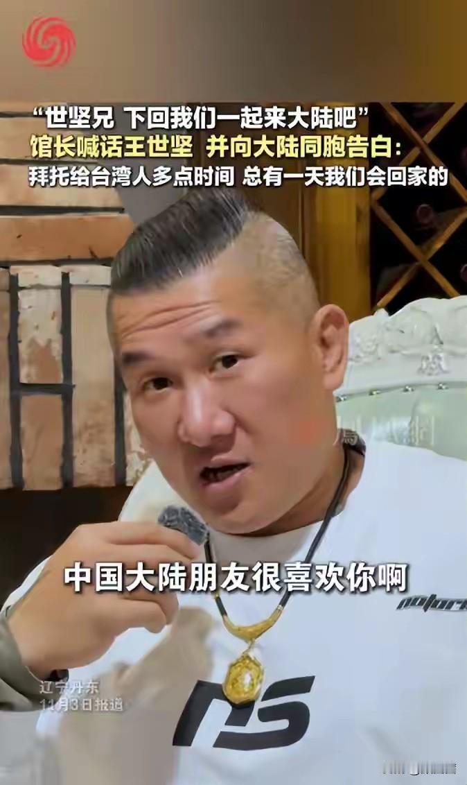台湾网红“馆长”喊王世坚共赴大陆,一句“总有一天我们会回家”戳中无数人! 最近这段跨海峡的邀约在网上刷爆了,台湾知名网红馆长在视频里公开喊话王世坚,说大陆朋友其实很喜欢他,还诚意邀请他一起去大陆旅游直播、开“时间演唱会”。 馆长坦言,很多台湾民众对大陆的了解都被不实信息误导了,960万平方公里的土地藏着太多美好,只有亲自看一看,才能打破偏见。 而另一边,台湾国民党也迎来了新变化,郑丽文接过接力棒成为新任主席,马英九、洪秀柱等前主席都到场支持,朱立伦还当场号召内部团结,打破了之前的内斗传言。 深耕两岸事务多年的洪秀柱,给郑丽文提了“交流共赢”四个字的忠告,认为两岸只有多走动、多交流,才能化解隔阂。 其实馆长早年对大陆也有误解,直到亲身踏上大陆土地,体验到便捷的生活和真实的发展,才彻底改变看法。 现在他不仅自己奔走两岸,还想带动更多台湾同胞走进大陆。 而大陆这边也一直释放诚意,出台了很多惠及台湾同胞的政策,从就业创业到教育医疗,让台胞能享受同等待遇。 不管是民间的热情邀约,还是政坛的积极转变,都透着“两岸一家亲”的温情。 毕竟血脉相连,没有解不开的隔阂,多交流、多了解,就是走向团圆的最好方式。台湾省网红馆长