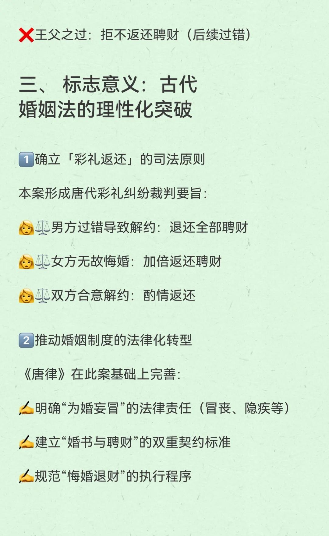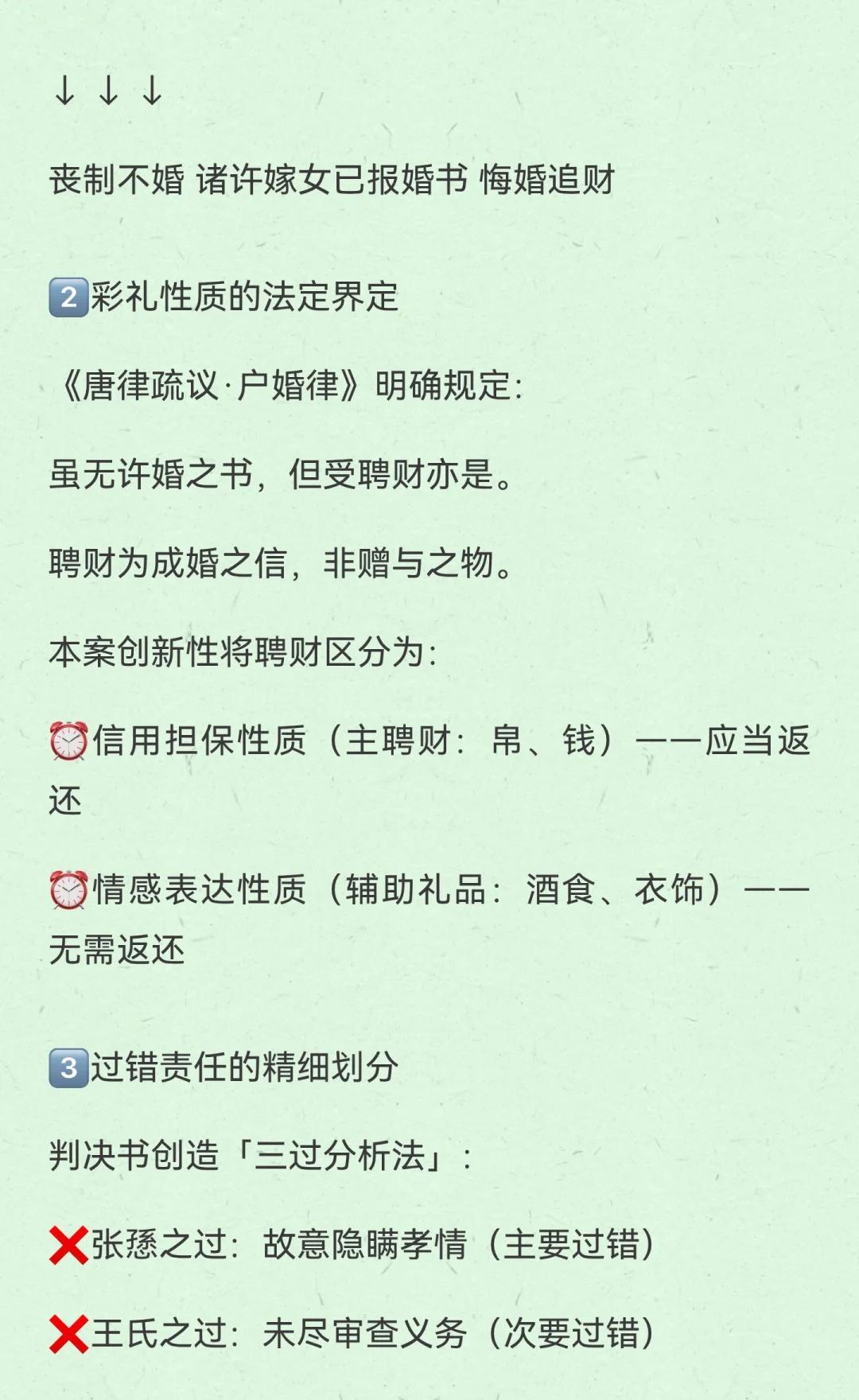 彩礼:终究还是错付了🥹 唐代判例通过「三过分析法」,明确彩礼返还原则,确立男方过错导致解约应退还聘财的司法标准,推动婚姻制度法律化转型,为现代彩礼纠纷提供历史智慧。 法律法律人 律师日常 法律服务 彩礼 结婚
