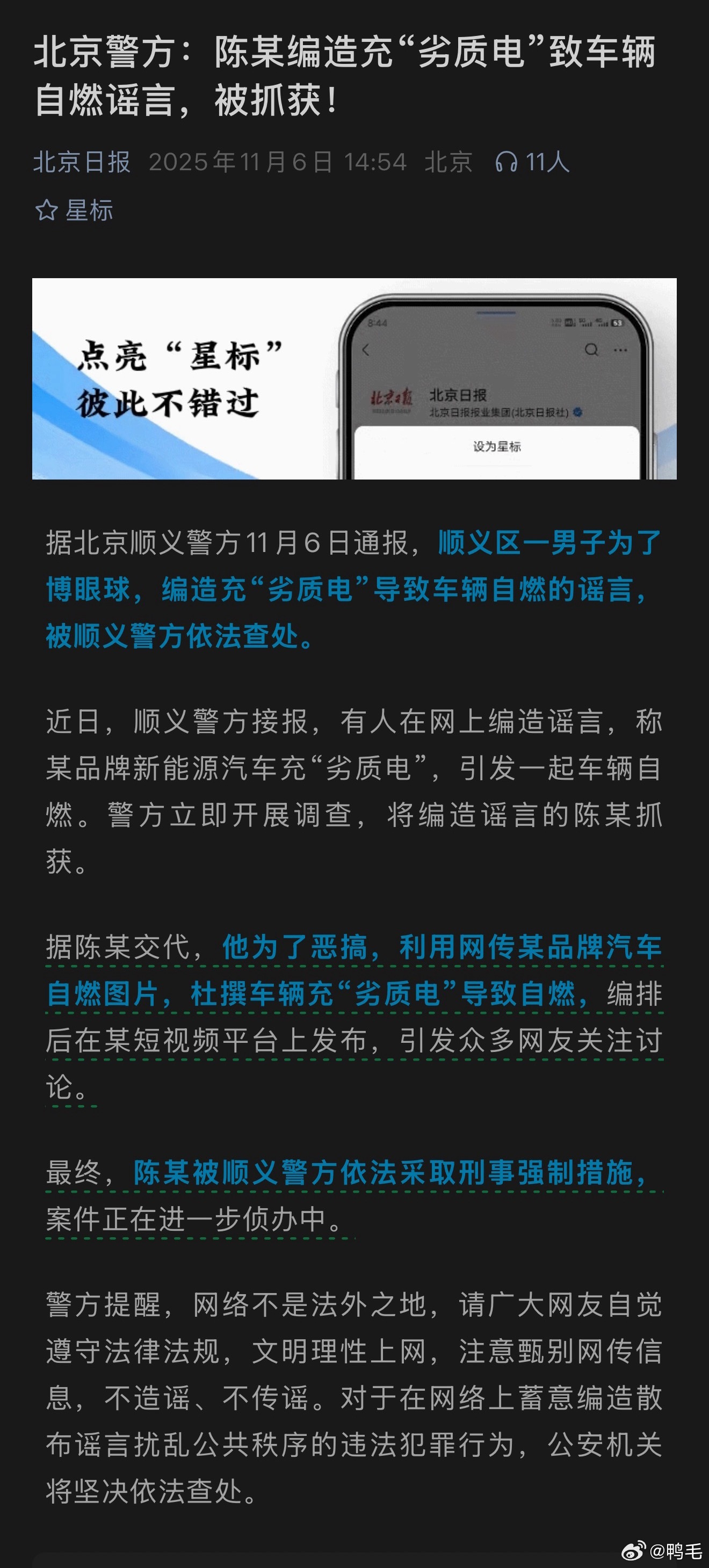 「他为了恶搞,利用网传某品牌汽车自燃图片,杜撰车辆充“劣质电”导致自燃」