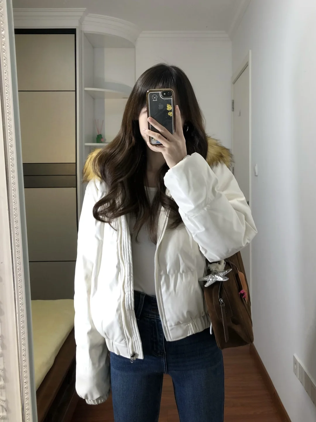 今年第一件白色皮羽绒服