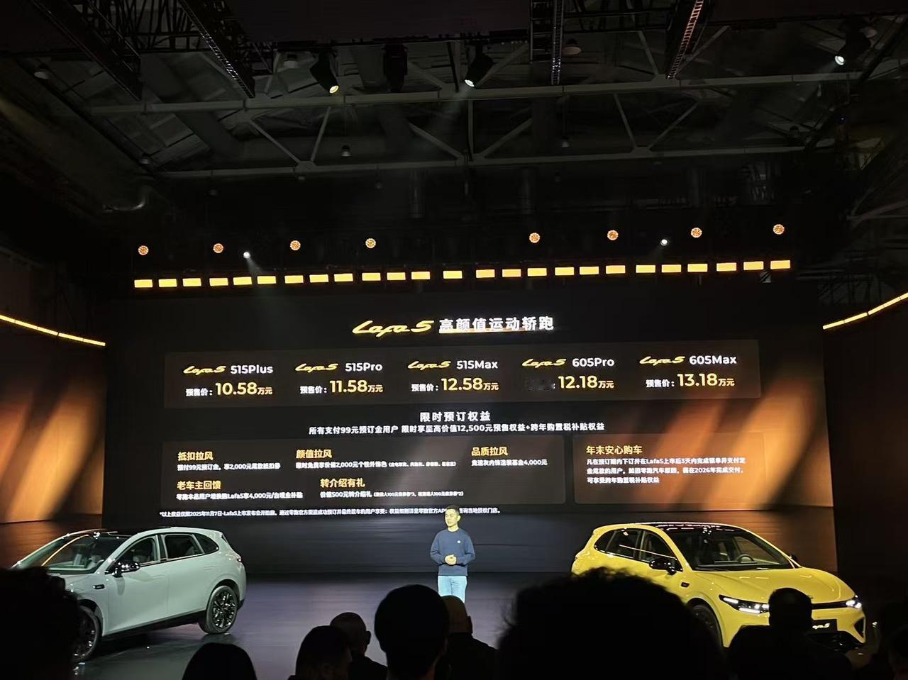 车盟快讯:11月7日零跑Lafa5召开预售发布会,官方预售价10.58万-13.18万元,将在11月28日正式上市。即日起到正式上市之前还有价值至高12500元的5项限时预售权益,同时在预定期内下订并在Lafa5上市3天内完成锁单并支付定金尾款的用户还可享受跨年购置税补贴权益。 Lafa5自曝光就备受年轻消费者关注。其轿跑风格设计张扬,封闭式前脸搭配贯穿式LED日行灯,溜背曲线搭配无框车门,仪式感拉满。内饰上,科技感十足。副驾驶前方的“魔术扩展岛台”,为个性化改装留足空间。新车提供单电机后驱高低功率版本,高功率版零百加速约6.8秒。续航有515km与605km两种CLTC续航版本,还支持800V高压快充。 从颜值到性能,零跑Lafa5都精准击中年轻人的心,你会考虑入手吗?