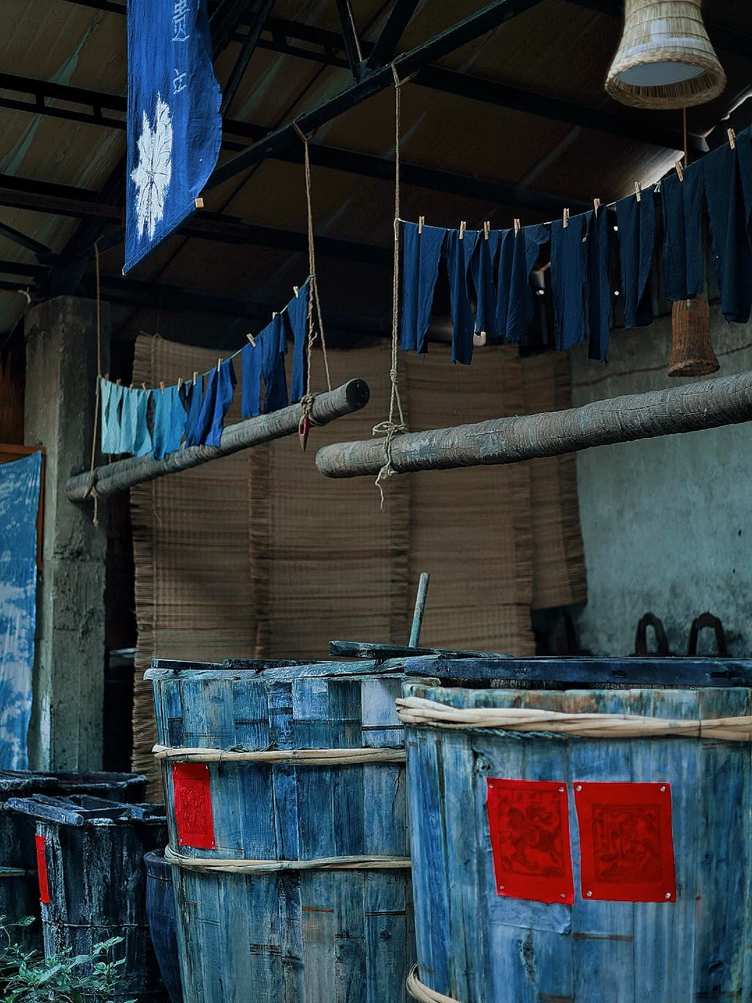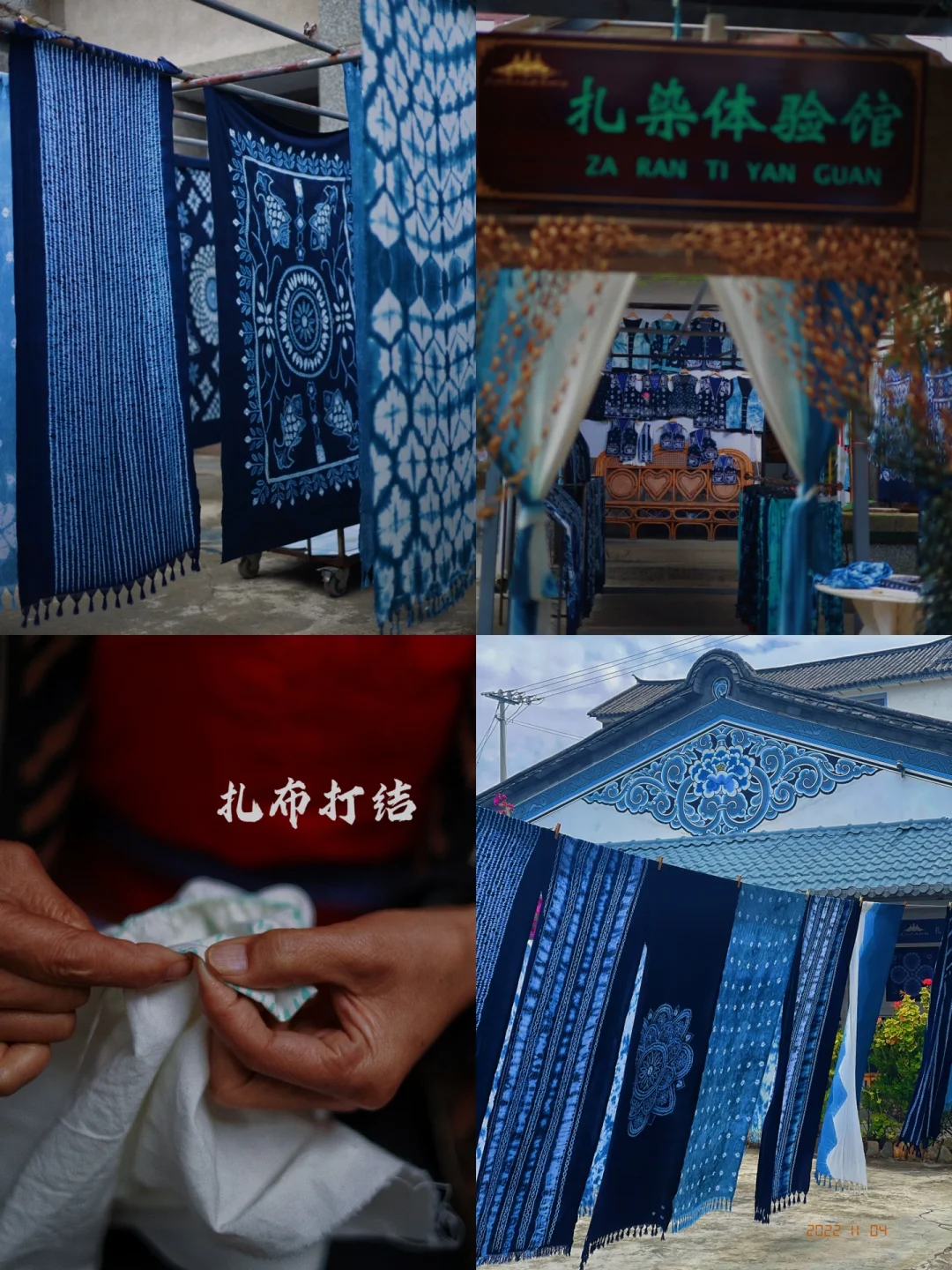 村子的入口处有一个名为大理镤真白族扎染博物馆,在周城算是比较大的扎染体验馆,也是一个网红博物馆,有很多的网红来过,拍照非常好看,但是价格嘛会比其他的地方贵一到两倍,我们进去参观了然后又去村里转了几圈,一个白族奶奶说她家的的扎染比较便宜,而且做了几辈人了,于是我们跟着她来到了名为“董家蓝染坊”的院子,开始了我们的扎染体验~