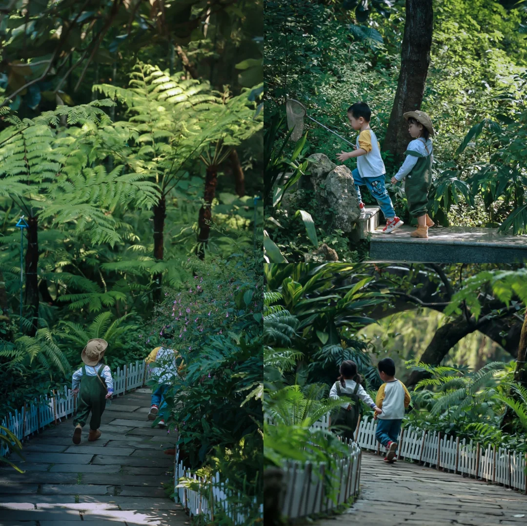 以前来过很多次植物园,但是却没发现这个隐藏的角落,它在进大门后右手边,经过一座桥,就在桥下面的小路进去,不要走大马路不然一直会找不到,我以前就没注意到这条小路,拍照太出片了,好多小姐姐在里面拍森林系的照片,里面有一条小溪流,还有一座吊桥在森林上面,这里就像藏在植物园里的一处丛林密境,和其他区域不同,这里成片的绿色珍稀植物和大树,构造了一片原始森林的模样,每隔半小时还会喷雾,里面有很多台阶可以徒步,但是每条线路都不长,对于孩子来说特别合适,大概十几二十分钟就可以登顶哟,如果想带孩子体验短途徒步吸氧的,就来这里吧,运气好的话还可以遇到可爱的小松鼠在树上到处蹿呢🐿️