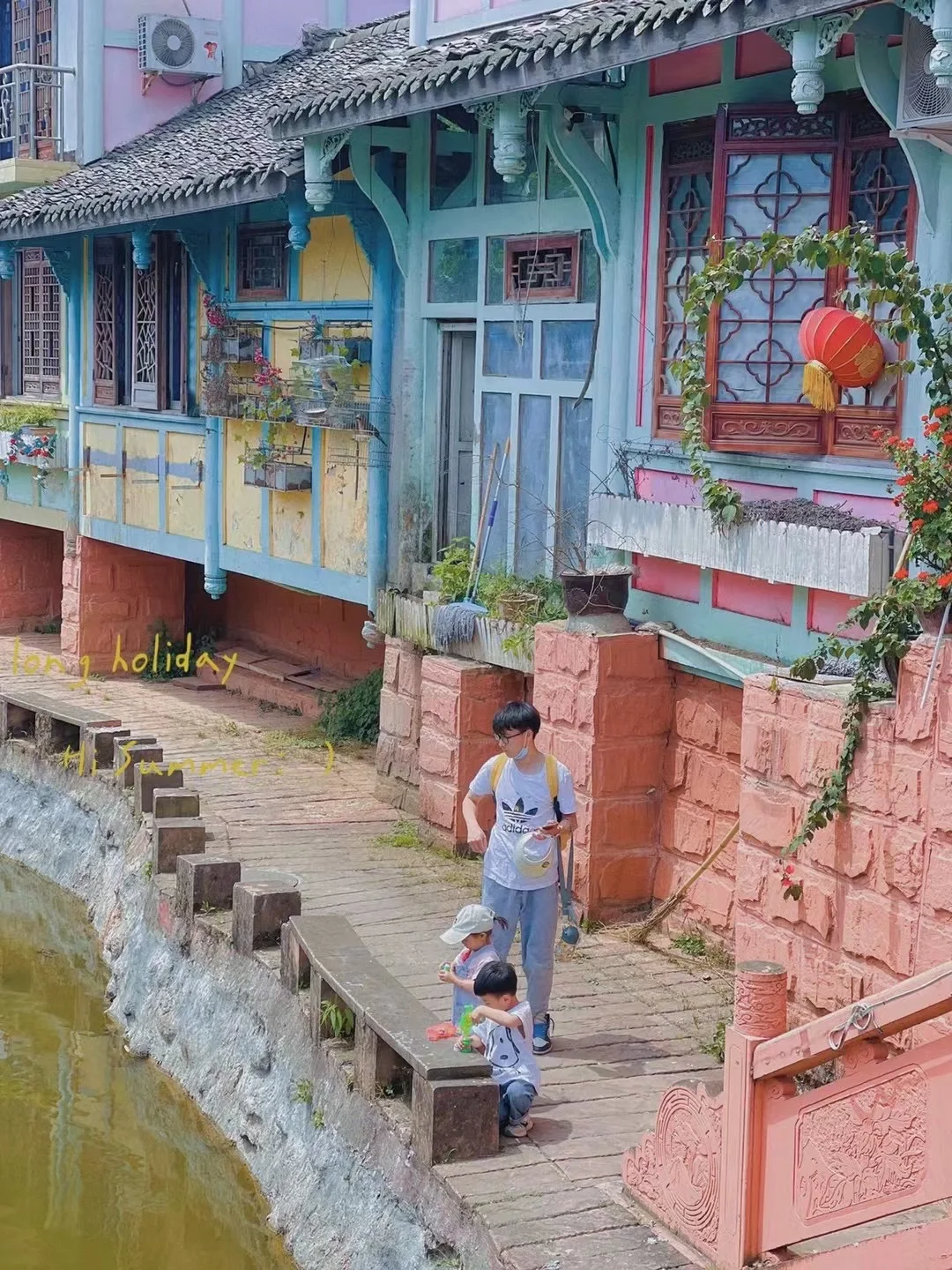 这是上次去看萤火虫半途偶遇的一个彩色古镇,据说这是一个由清朝太平天国改造的小镇,鲜为人知,完全没有被商业化,闲适宁静,可谓成都威尼斯彩色岛,就藏在成都周边,距离市区1.5小时左右,整个古镇都是彩色的,跟走在童话世界里一样~