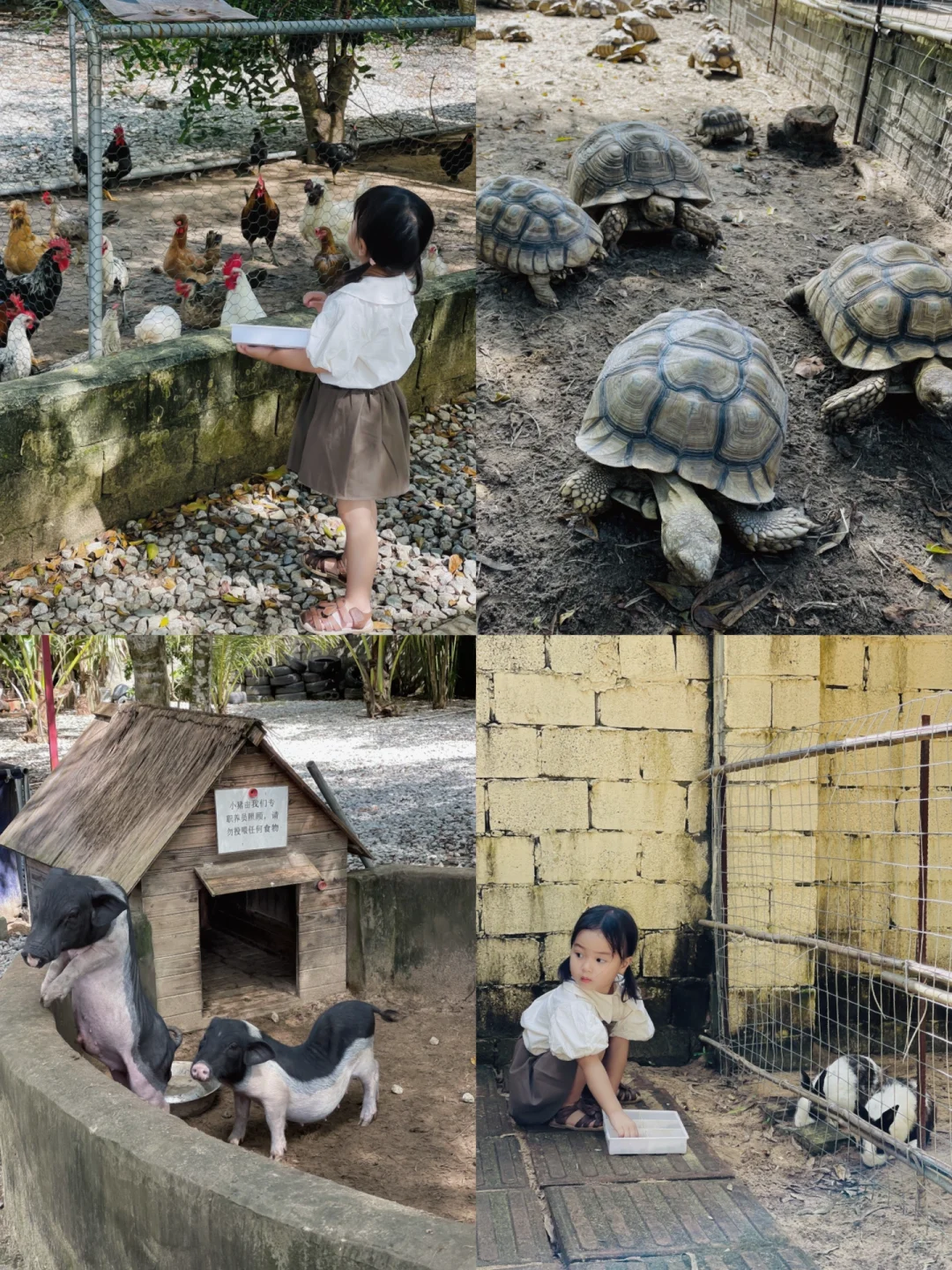 🐢从陵水过去一路上都是乡间小路,田间牛羊鸡鸭成群,芒果树成片,特别原生态的一个地方,园区不是很大,大概两个小时就可以玩完,里面除了可以小朋友们自己喂养陆龟以外,还可以给乌龟洗澡(30💰一次),另外园区还有很多其他小动物,小猪,兔子,土拨鼠,鸡,宠物鸭等,套餐里都送有喂养这些小动物各自对应的九宫格食物~