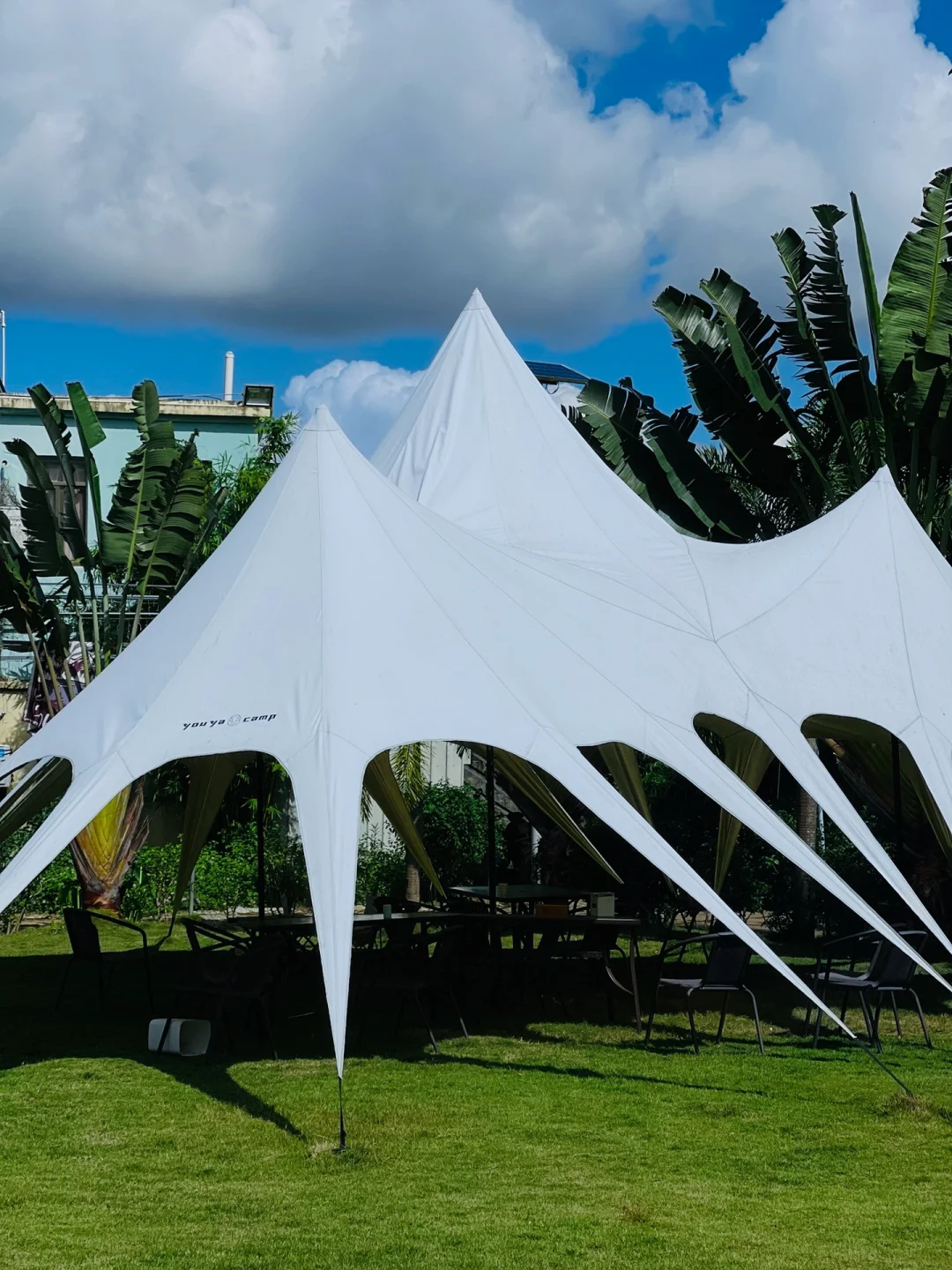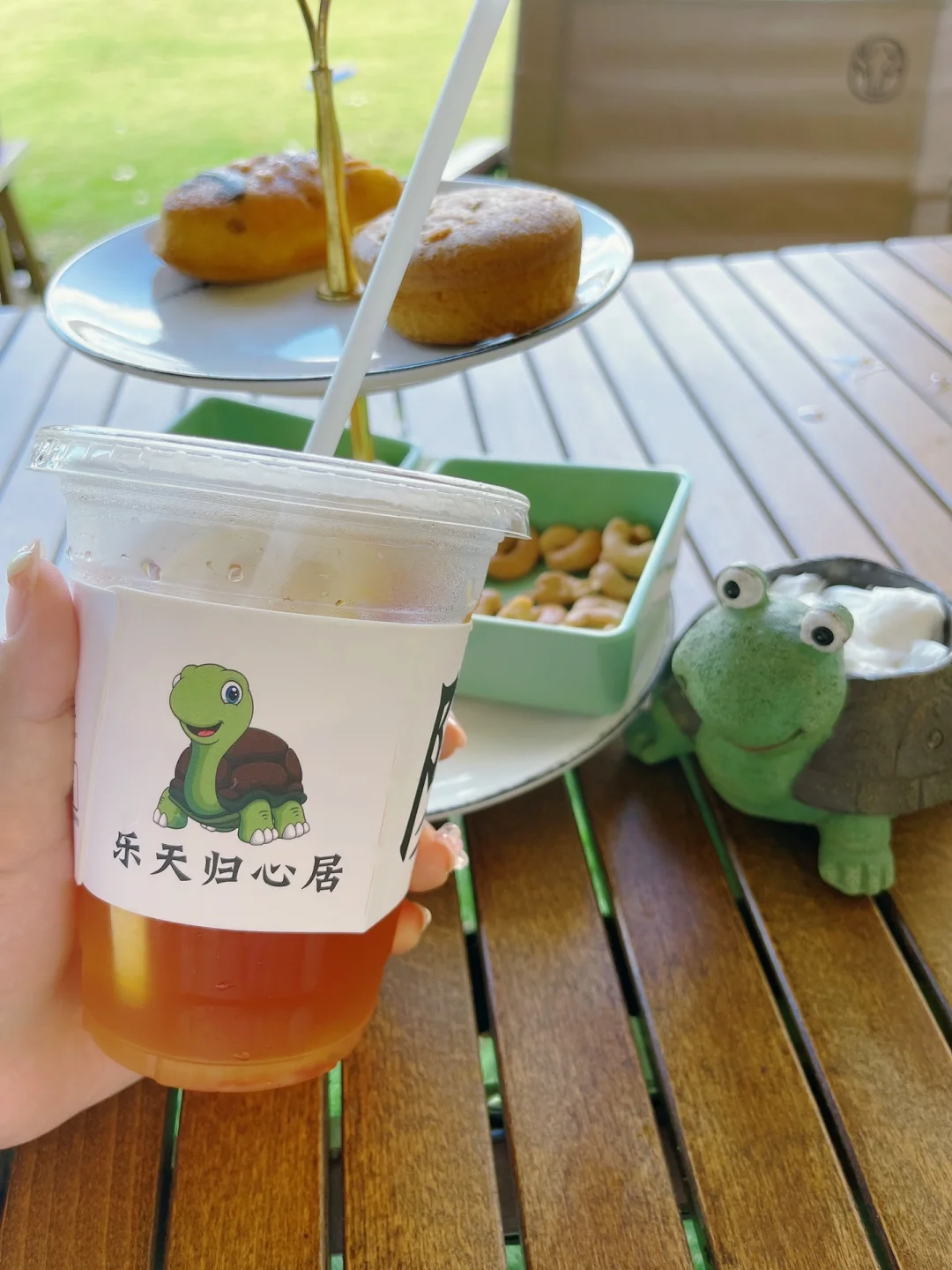 🍹撸完乌龟以后,在园区的另一边是一块超级大的草坪,里面可以露营,还有各种儿童游乐设施,像滑滑梯,秋千,跷跷板等都有,还可以玩飞盘,平衡车,踢足球等,小朋友们在这里可以尽情的奔跑,大人就坐在天幕下面喝下午茶,我最喜欢的也是这个角落,既能看着娃玩,又能休息喝个下午茶,这种快乐老母亲们都懂的~