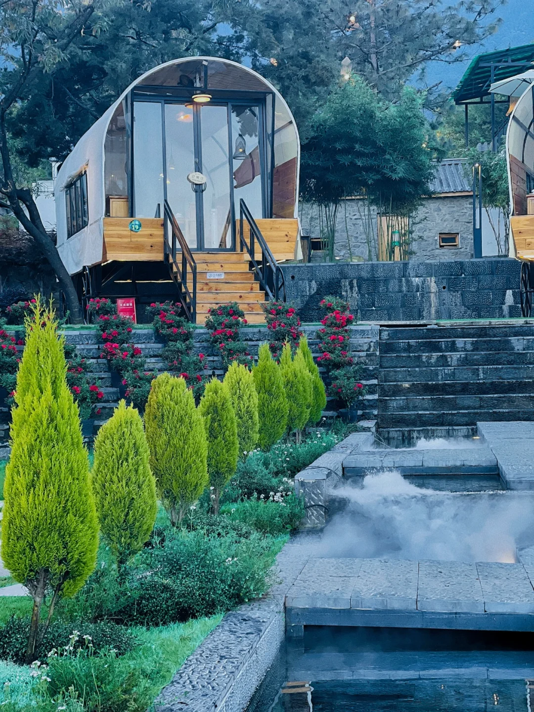 玩完后如果你不想去别的地方找吃的,那么这里也有晚餐,现在是淡季所以马车餐厅也不需要预约,提前给工作人员讲就好,这里大多数是炒菜,人均大概80左右,坐在非常有设计感的马车包间里吃饭,胃口都变好了呢~
