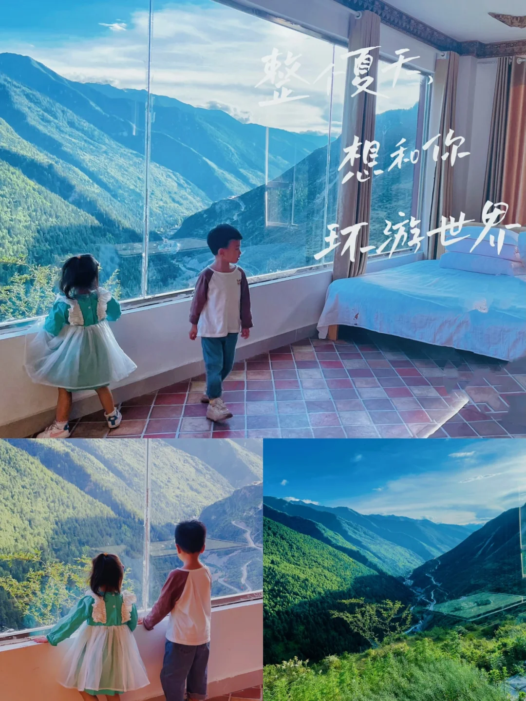 推荐大家住270度景观房或者小木屋,景观房三面大落地窗,两张床,一个超级大和1.2米的,一家人四口都够住(这次我运气好,网上看的时候只有最后一个房间,所以我赶紧定了,160多的双人床本来是,但是遇到观景房的顾客退房了,所以老板娘给我免费升级了,看我带两个孩子也没给我加钱,太感谢了)这个房间主要是可以坐在屋内看群山,晚上躺着床上可以看到银河,小木屋也很棒有阳台可以观景,而且是独立的一小栋,要提前买怕房间住满