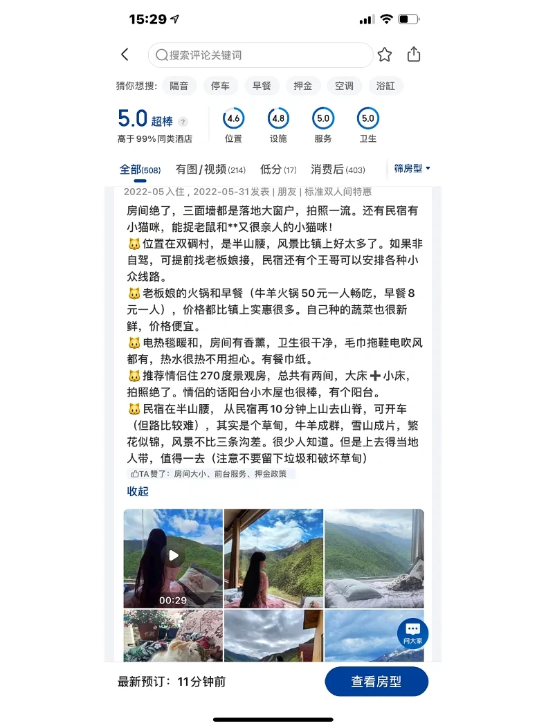 第一个原因就是刚才说的,旺季我们没有预约到网红酒店,只能在美团找了很久,看到这个评分高,而且在大山深处吸引了我。第二个原因就是可以看银河,还有节目表演,价格特别实惠160到300左右
