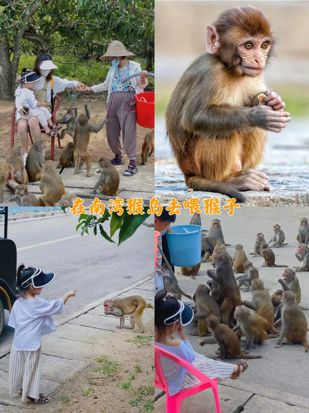 2⃣️南湾猴岛:去这里会经过新村码头,可以体验1元钱海上公交过去喂猴子(攻略之前有写),也可以坐过海索道过去,在索道上欣赏壮观的疍家鱼排