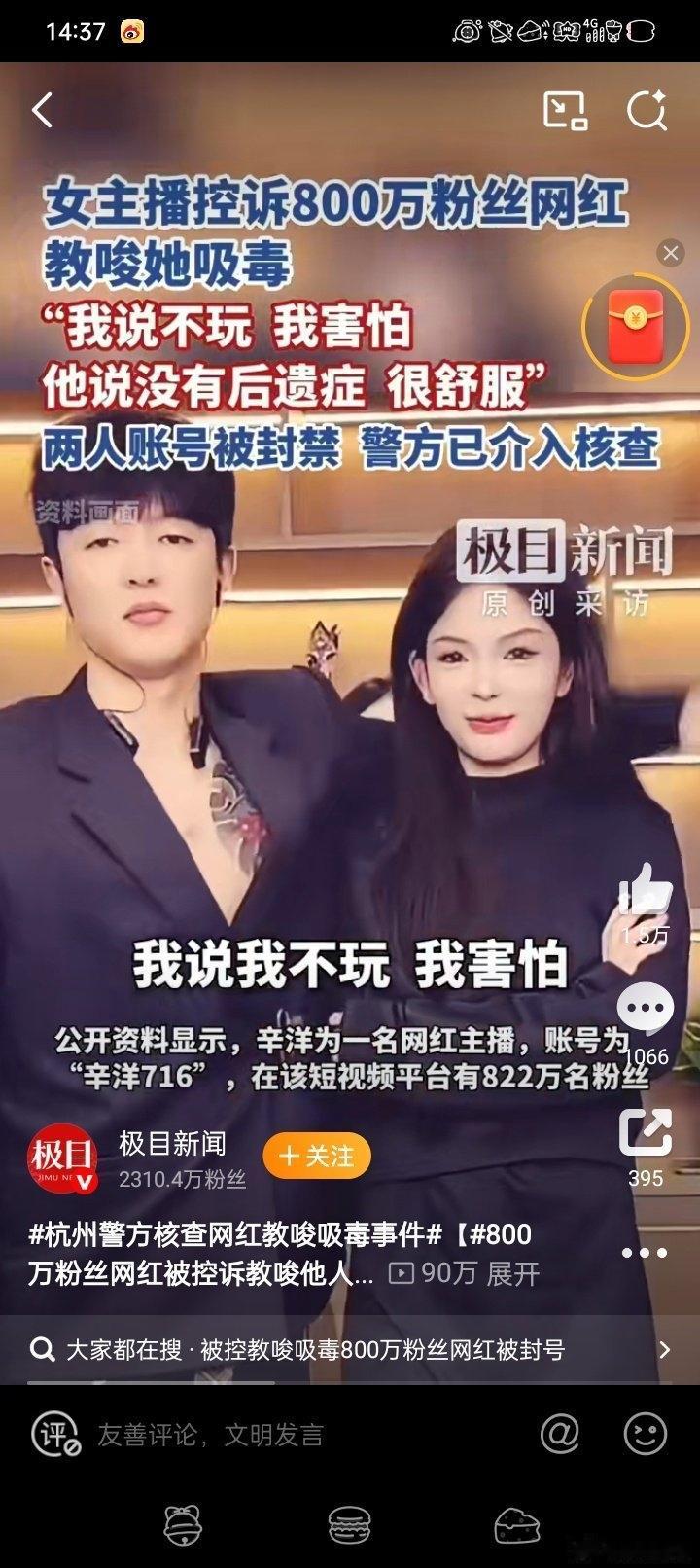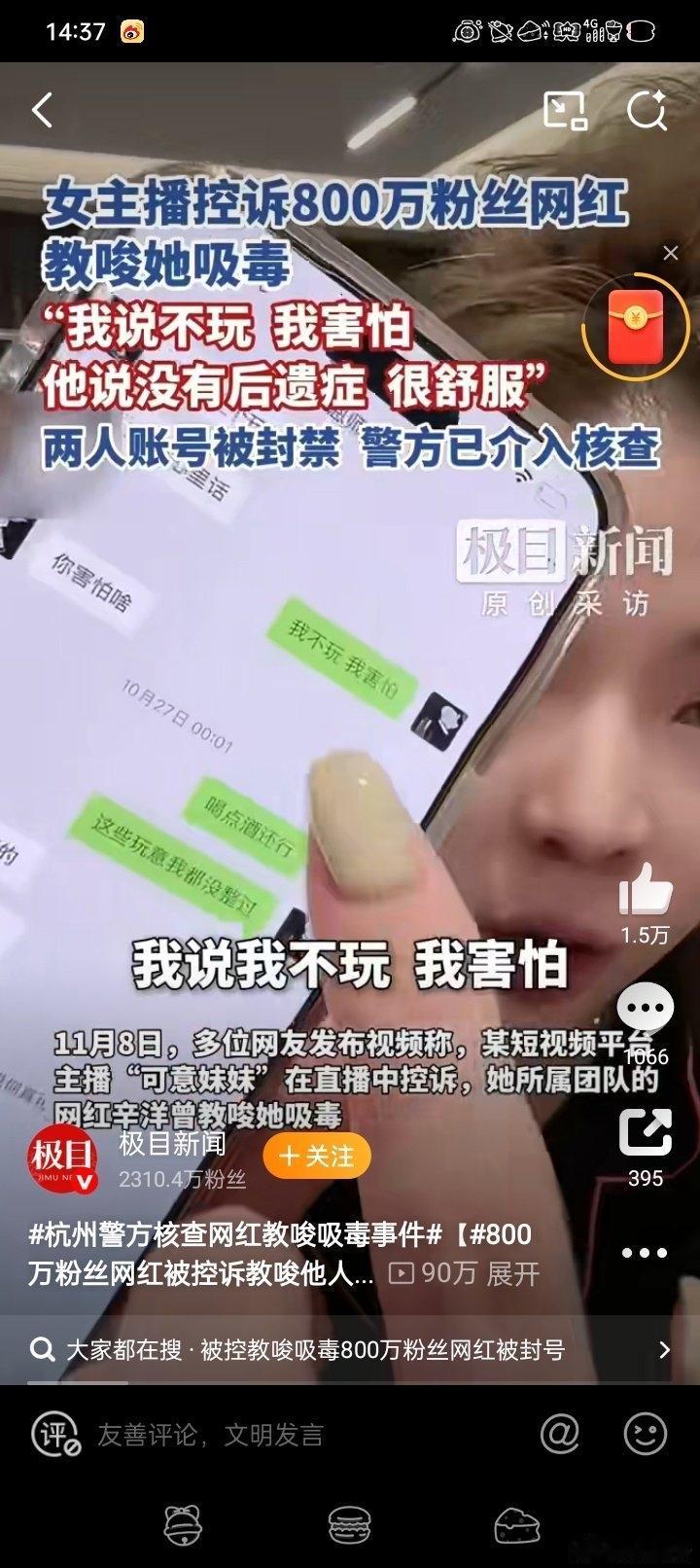 800万粉丝的网红居然教唆别人吸毒,这事儿真的离谱到没边了!刷到新闻的时候我直接
