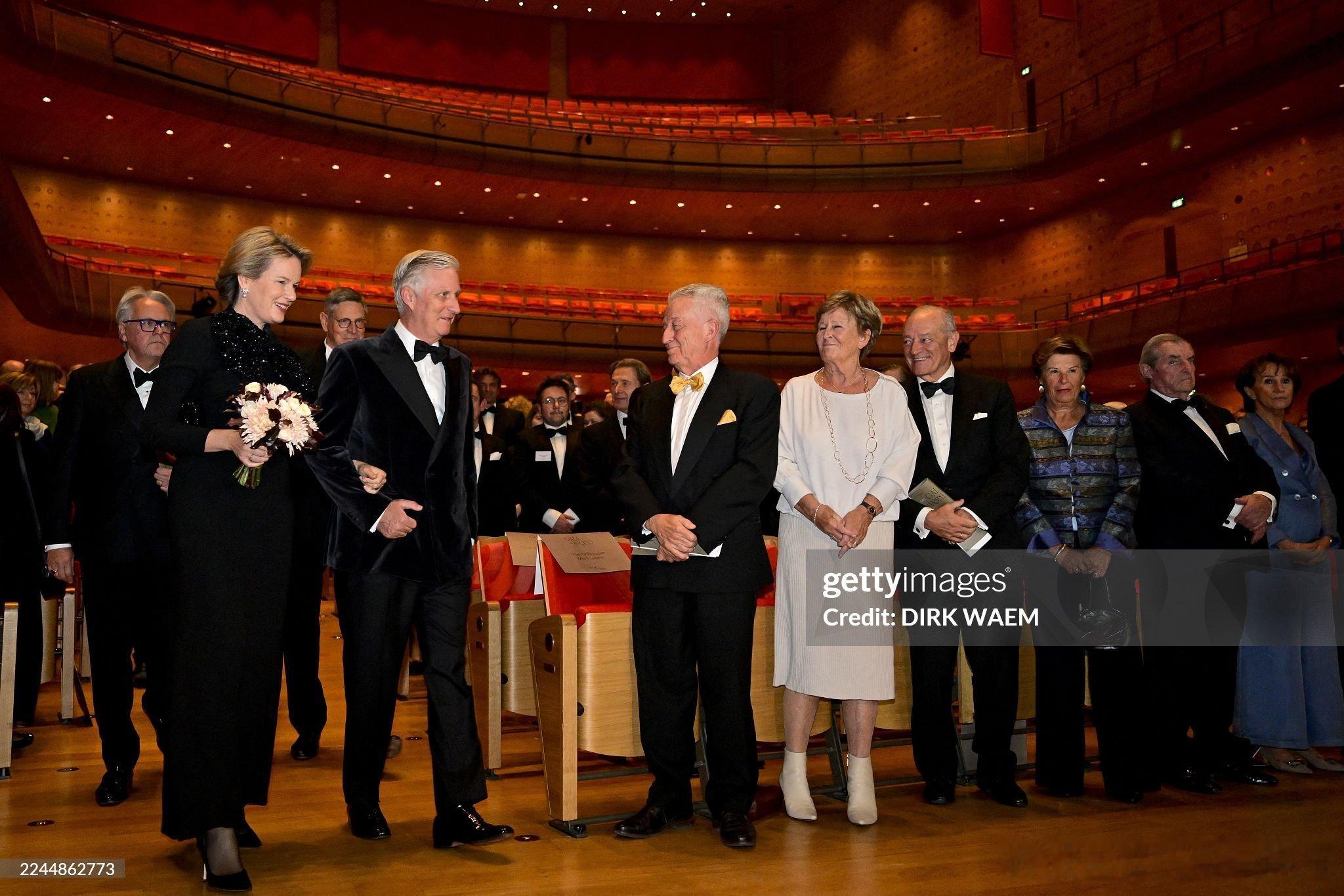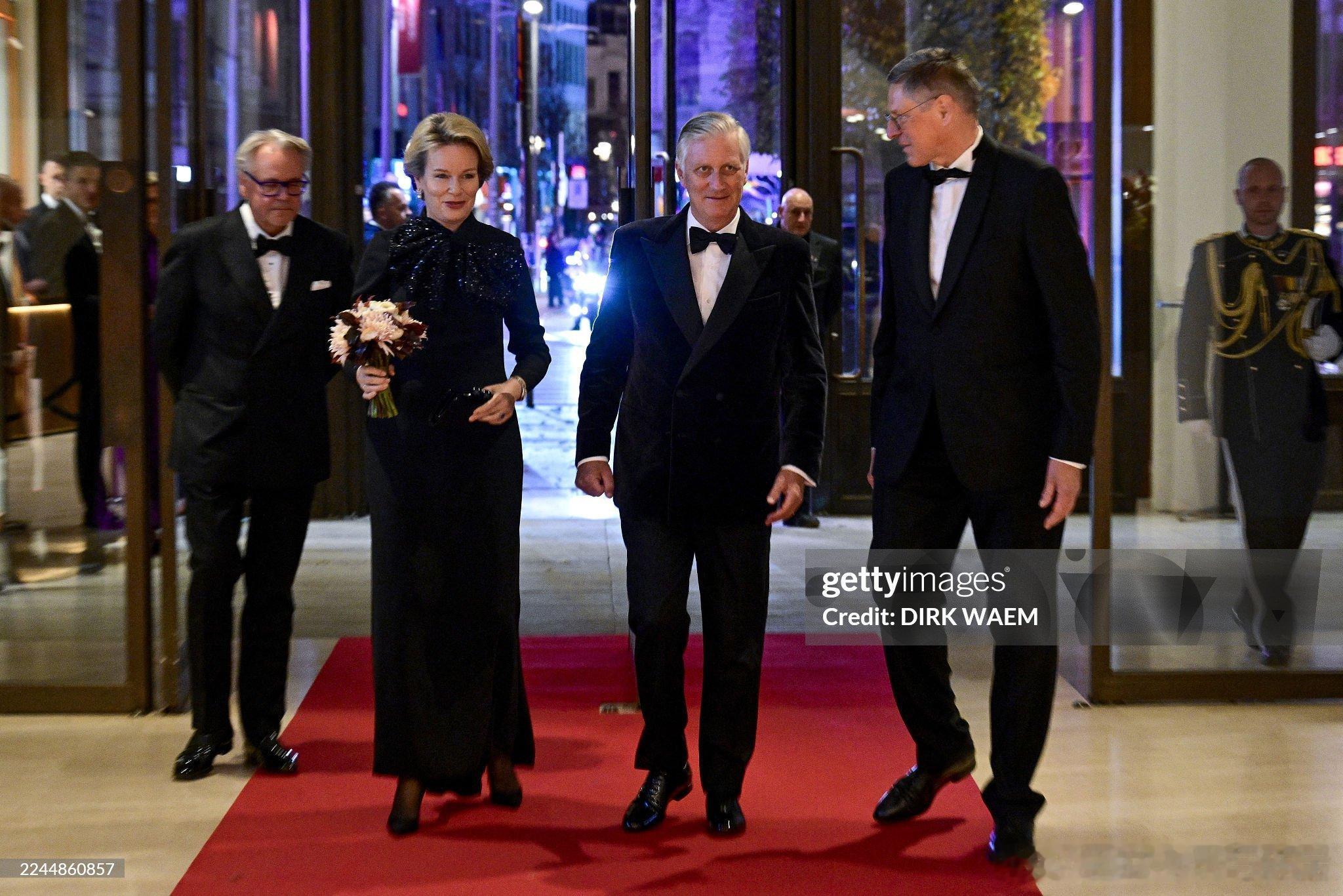 新闻 2025.11.6 比利时国王夫妇出席博杜安基金会安特卫普支持委员会成立25周年庆典,玛蒂尔德的黑色蝴蝶结礼服来自Giorgio Armani,这些图是真够烂的。