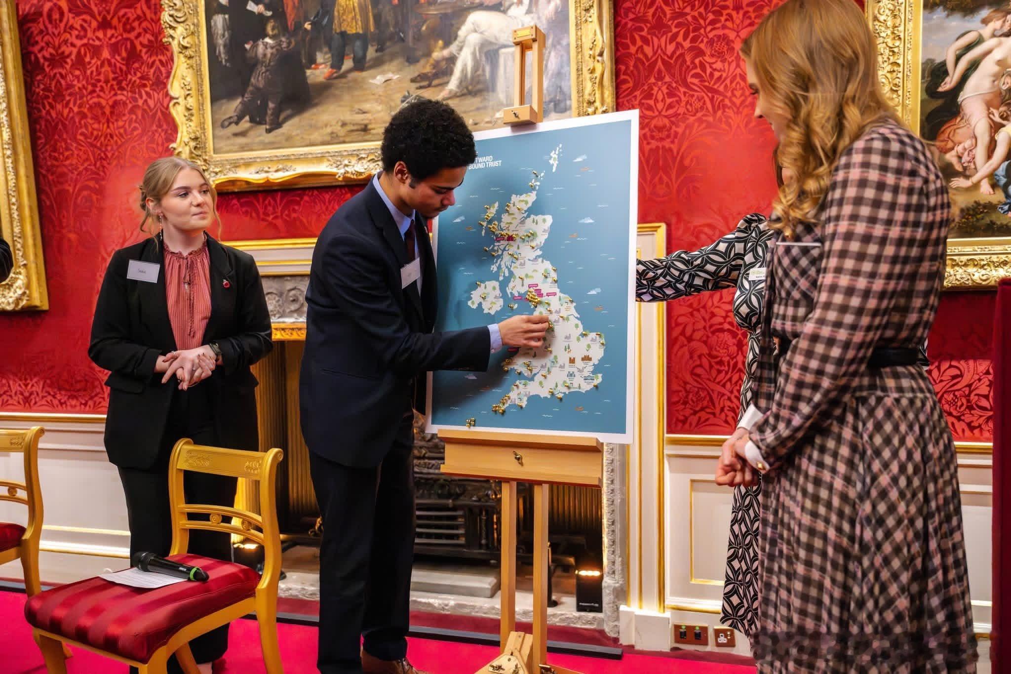新闻 2025.11.6 英国爱丁堡公爵爱德华和碧翠丝公主在圣詹姆斯宫出席户外拓展训练信托基金晚宴,爱德华是赞助人,碧翠丝是副赞助人,这对叔侄组合一起出席公开活动还真算挺难得,碧翠丝的格纹裙来自Self-Portait。