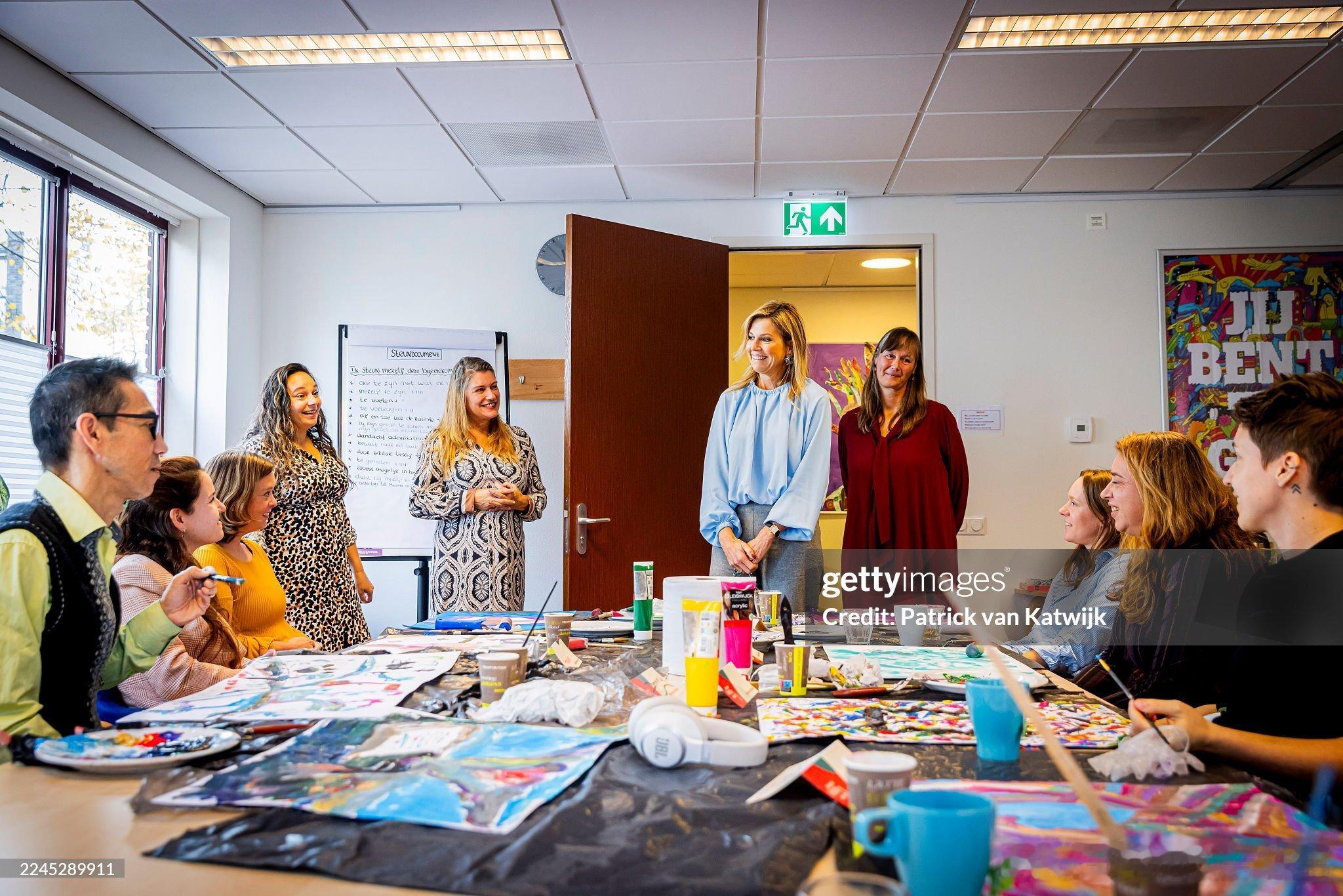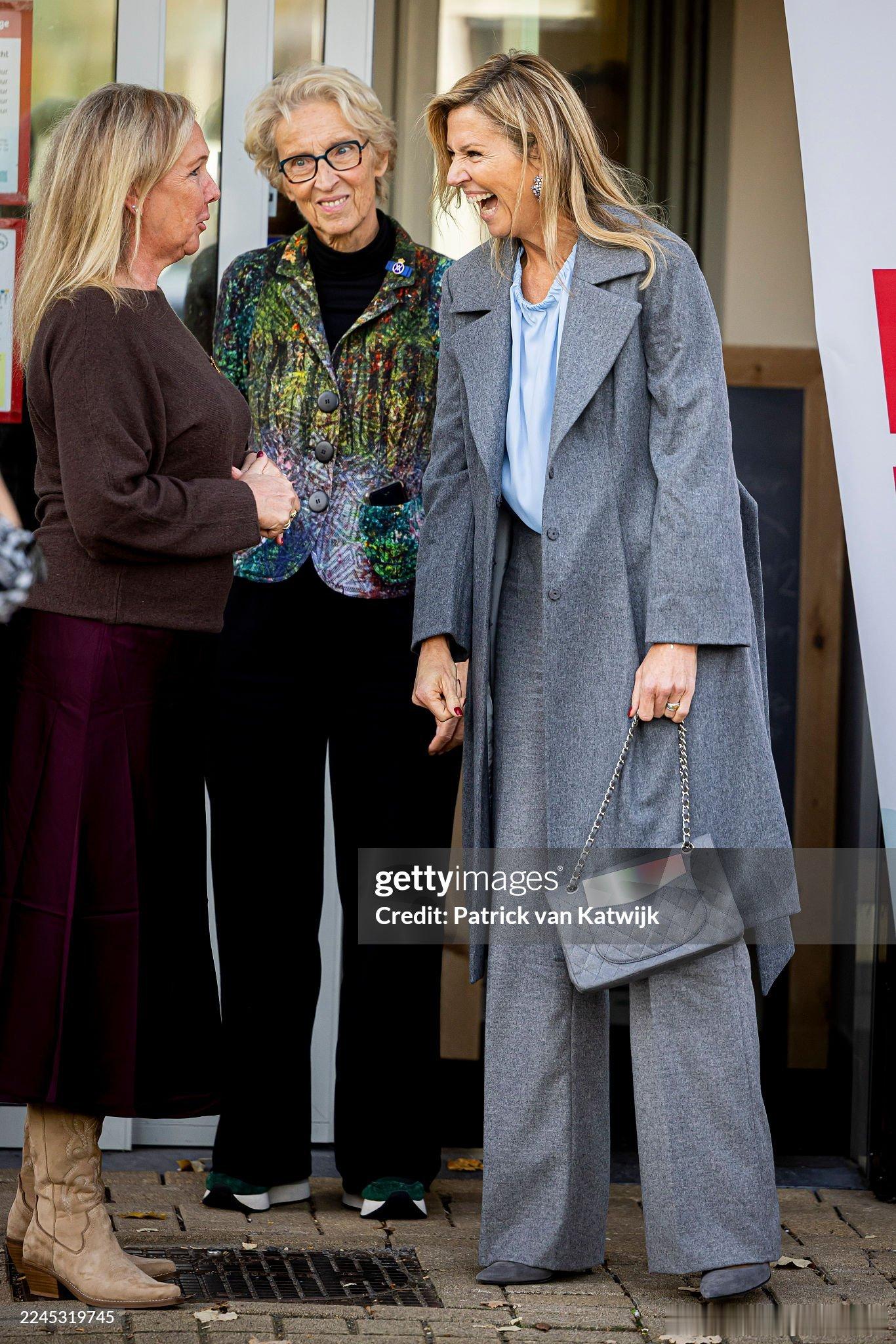 新闻 2025.11.6 荷兰王后玛克西玛访问乌得勒支埃尼克康复学院(为因精神脆弱或成瘾而遭受生活困扰的人士提供康复服务的机构),玛克西玛的新淡蓝色褶皱上衣来自Natan,橙子玛头发一抓大衣一甩,开工ing。
