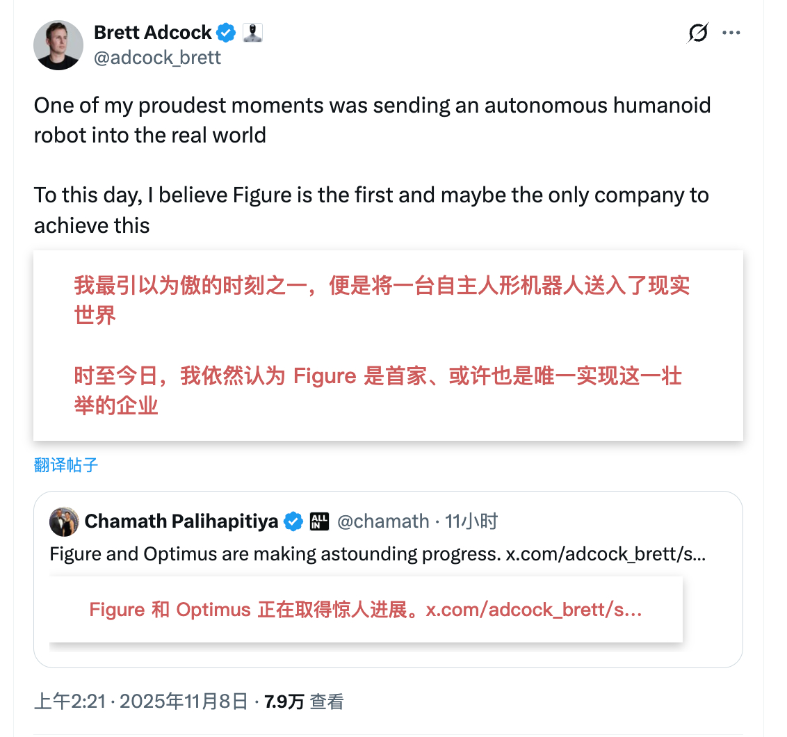 Figure CEO Brett Adcock 说“我最引以为傲的时刻之一,便是将一台自主人形机器人送入了现实世界