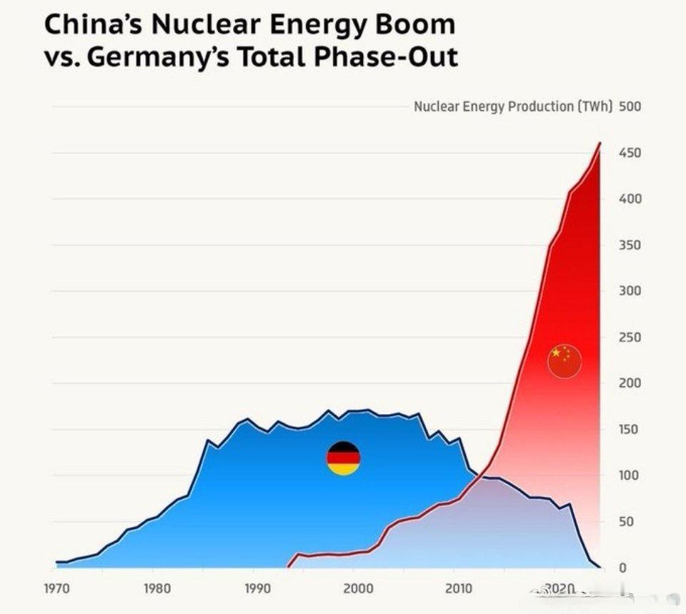 中国与德国的核电发电量对比。