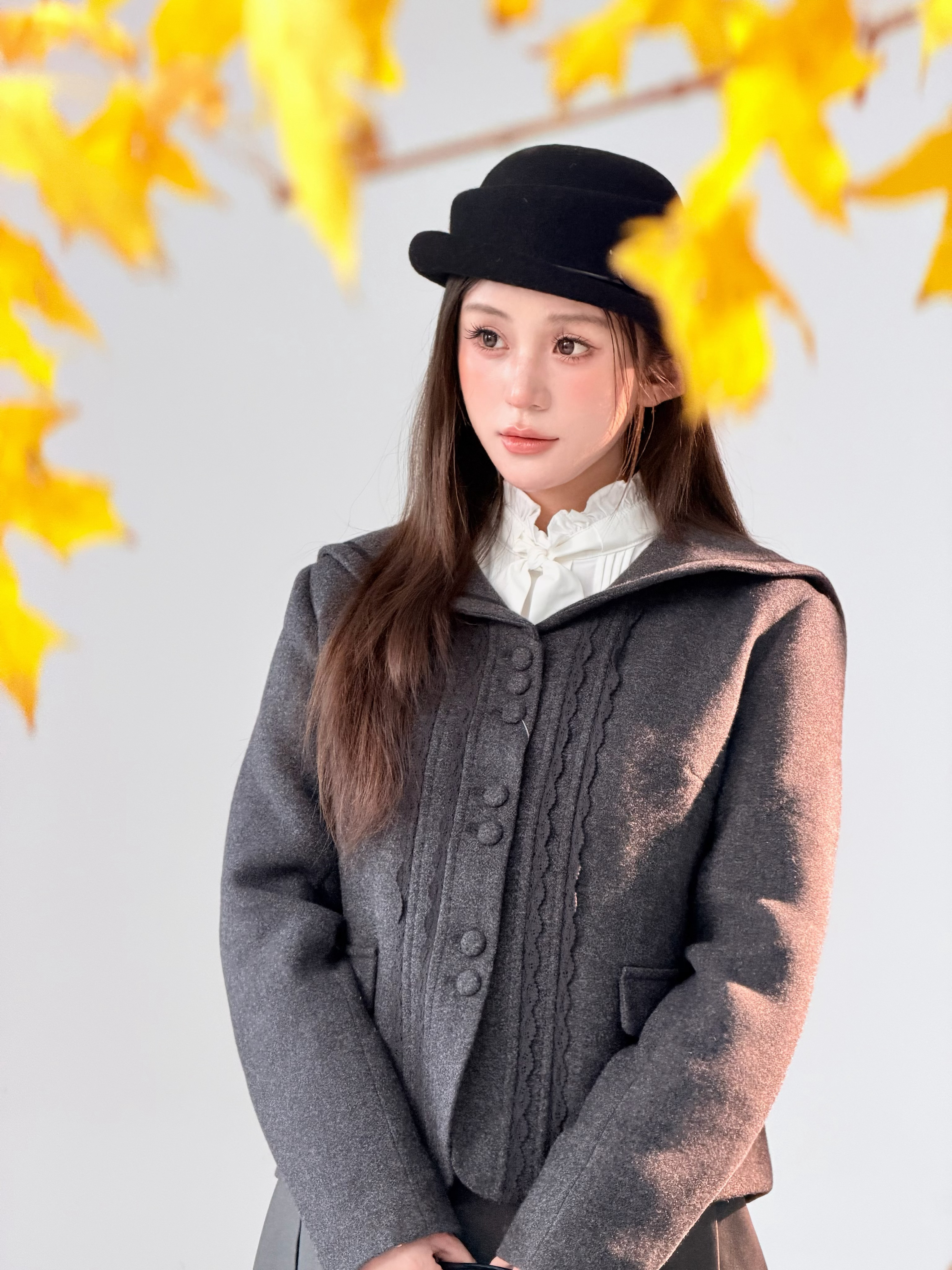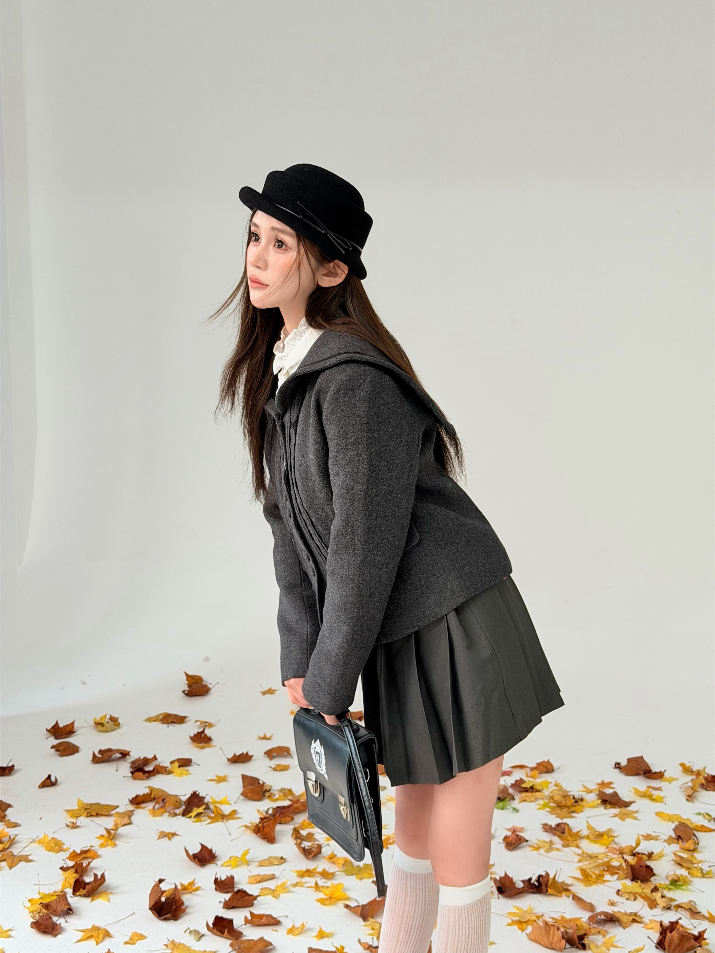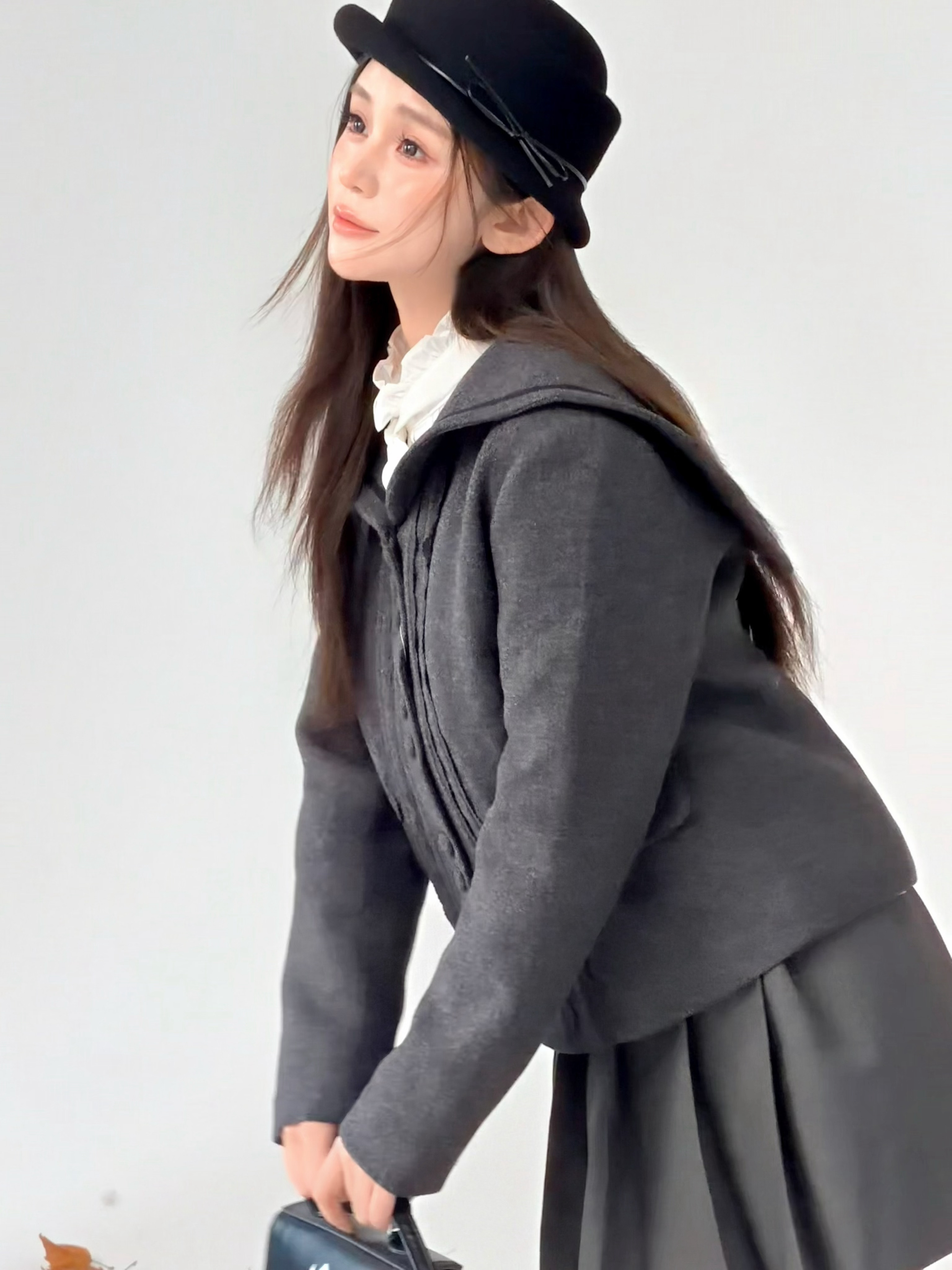 许妍半扎发 扎了三次才扎成功蹲姿拍照也是拍上了 但怎么感觉我蹲的有点怪怪的hh