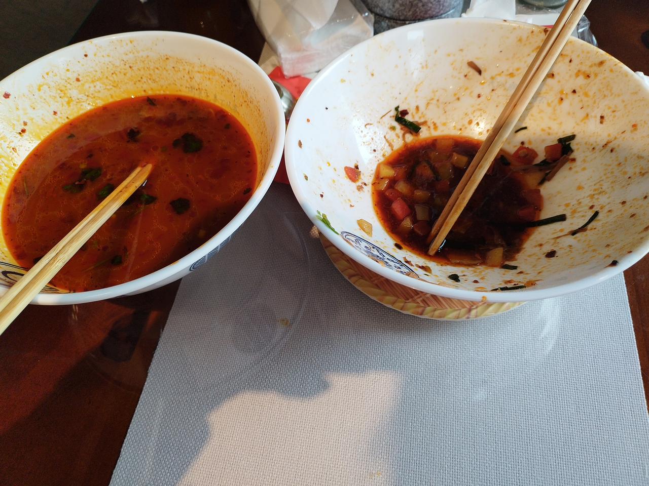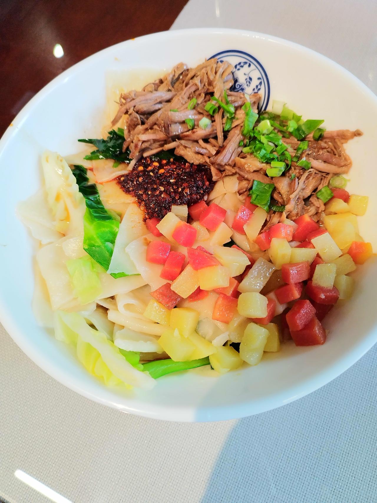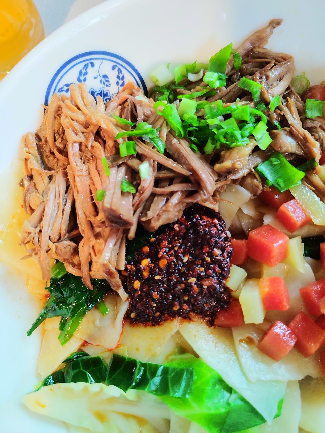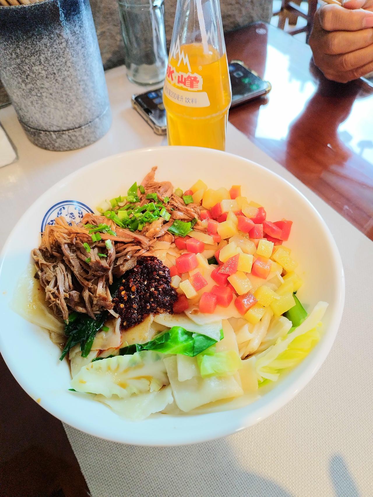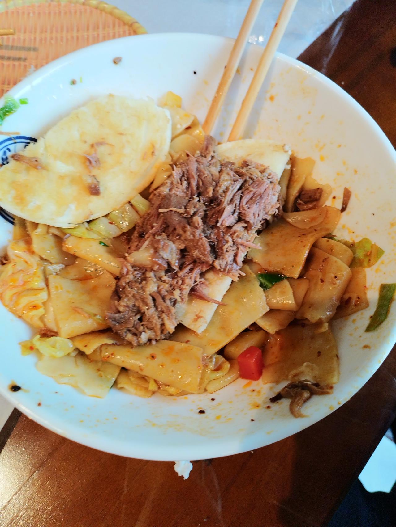 一说到西安的肉夹馍,大家马上都会主推子午路张记和秦豫,这两家我都吃过,我没觉得好吃,都是又油又腻满手流油,腊汁子只有炖肉的调料味没有肉香味,肉剁的很烂但是实际并不烂,如果大块吃一定是比较柴的那种,也许是用的肉质本身不嫩。 所以我一直很少吃肉夹馍。 但是昨天吃的这家,真的征服了我的胃,真正的馍酥肉烂、香而不腻,好的肉夹馍,就应该这样唇齿留香。 又吃了他家的腊汁肉揪面片,再次考验了这家腊汁肉的实力,如果说腊汁肉夹在馍里还有可能蒙混过关,而像这样直接放在面上,好不好吃一尝便知,果然是真正的好肉小火慢炖出来的好味道。 面片厚薄均匀,又光又软又筋道,配菜新鲜,肉汁味道好,辣椒油用的辣椒,怎么会那么香,拌在一起真的是非常惊艳,一口一口根本停不下来,我家大聪明直接把半个肉夹馍放在面里,真是满足加满足,幸福感爆棚。 从来没有吃过这么美的肉夹馍,这家店看着是新店,以前都没听说过,说明肉夹馍、腊汁肉拌面这种西安传统面食做法和工艺并没有那么夸张,并不是历史越久就越出色,而是靠好食材和用心制作去呈现。