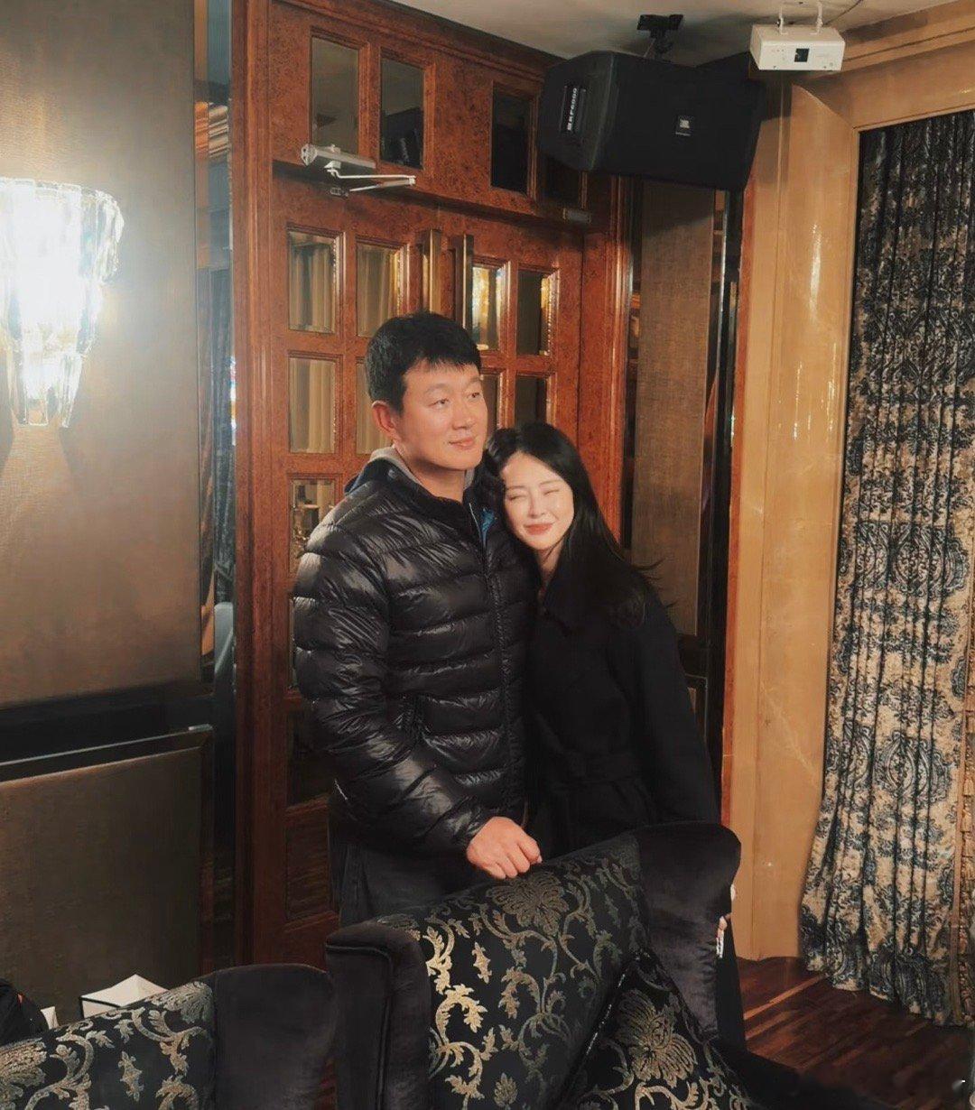 董璇生日,一家三口都是黑色系穿搭,董璇46岁依旧明艳动人,小酒窝穿着黑色丝绒群,