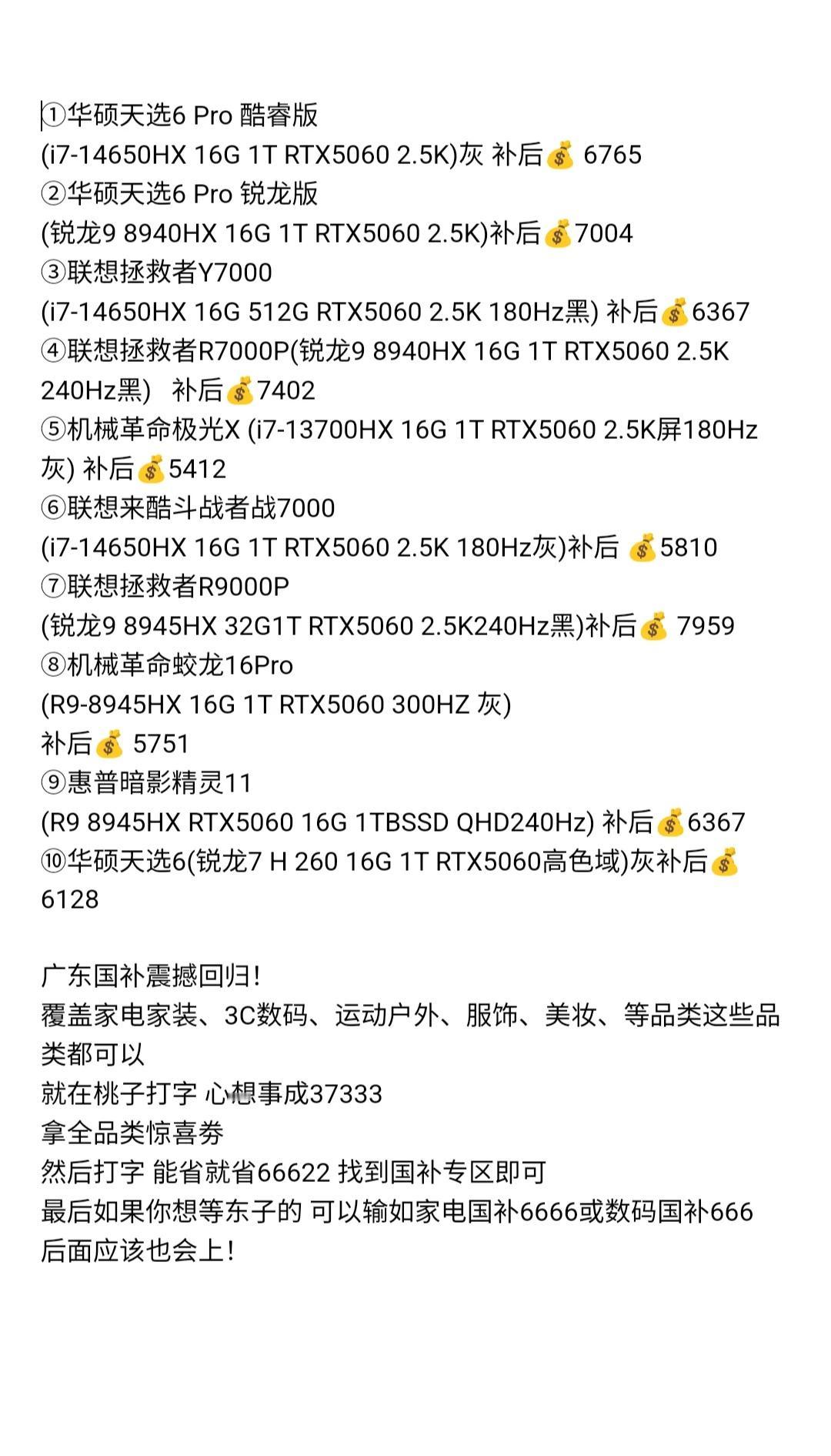广东国补终于又等到了! 广东省内都可用,电脑,手机,平板,手表,家电都可以!广东国补 电脑国补