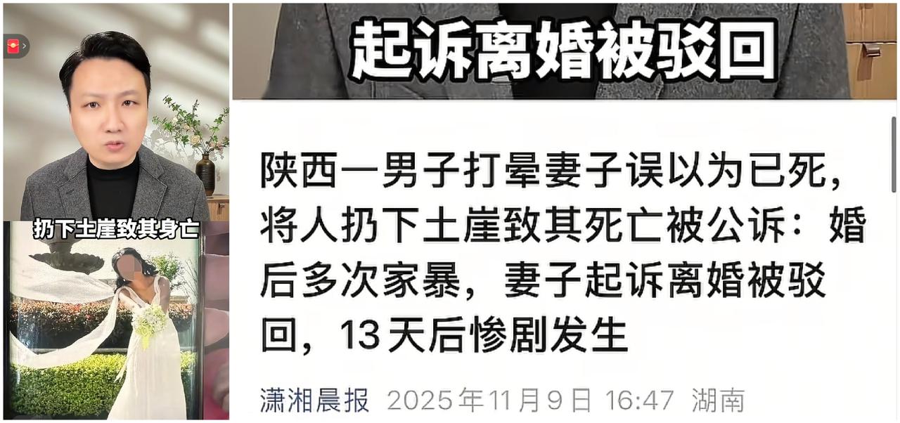 “陕西男子推妻子下悬崖”案情发展:男子家人还敢要求女方家人为了孩子饶他一命! 苗苗和丈夫张某,两人不仅从小认识,男方还是女孩哥哥的同学,两个人从小长大的地方相隔不过4公里,两人长大后经媒人介绍相识相知相恋,15年4月登记结婚,这明明是一对被大伙看好的夫妻,婚后苗苗还为丈夫生下两个儿子,在这个家里就算没有功劳也有苦劳吧,这两人没有所谓的出轨,至少在外人看来,这一家四口是幸福的! 可这段婚姻真如大家所看到的那样吗? 苗苗曾在社交平台发过“一步错,步步错,能过就过,过不了就各走各的”,想离婚,被法院驳回,在这段婚姻里挣扎过,可亲戚朋友都劝说“日子还要继续过,哪怕为了孩子,夫妻哪有不吵架的”,就是这一句句劝说,让一位母亲心软了下来,可她没想到的是,丈夫的不仅没改,反而动起手脚更加变本加厉对她,才导致现在悲剧的发生。 苗苗的故事给了所有人警示 婚姻一旦出现问题了,要相信自己的判断,永远不要听别人说别人劝,遵从自己的内心才是最好的选择!
