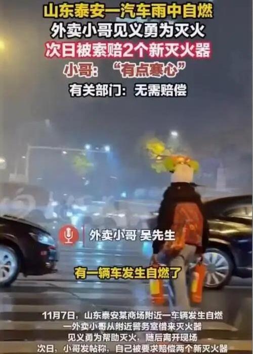 这事儿挺有意思的,一个外卖小哥路边救火反倒惹出麻烦来了。 前几天在泰安万达广场