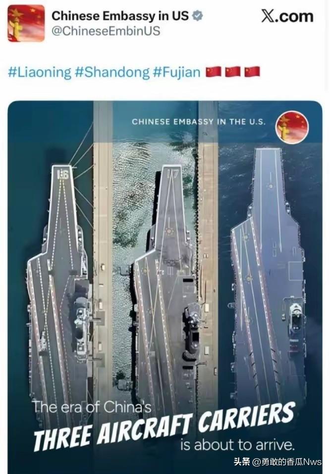 底气来源信心,且🈶实力基础! 近日,中国驻美大使馆发文并贴图称,中国时代即将来临!(图片是三艘现役航母并列) 不得不说,腰杆子硬了就是不一样! 用不了多久,可以用扩音器大声说话,用铁脚板走路都可以了!