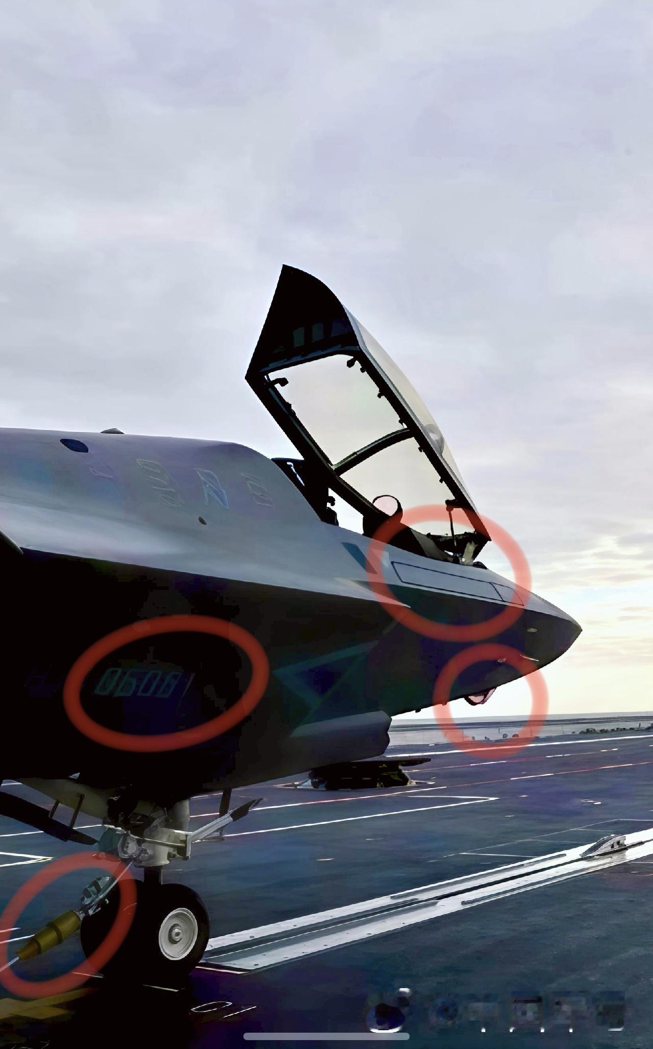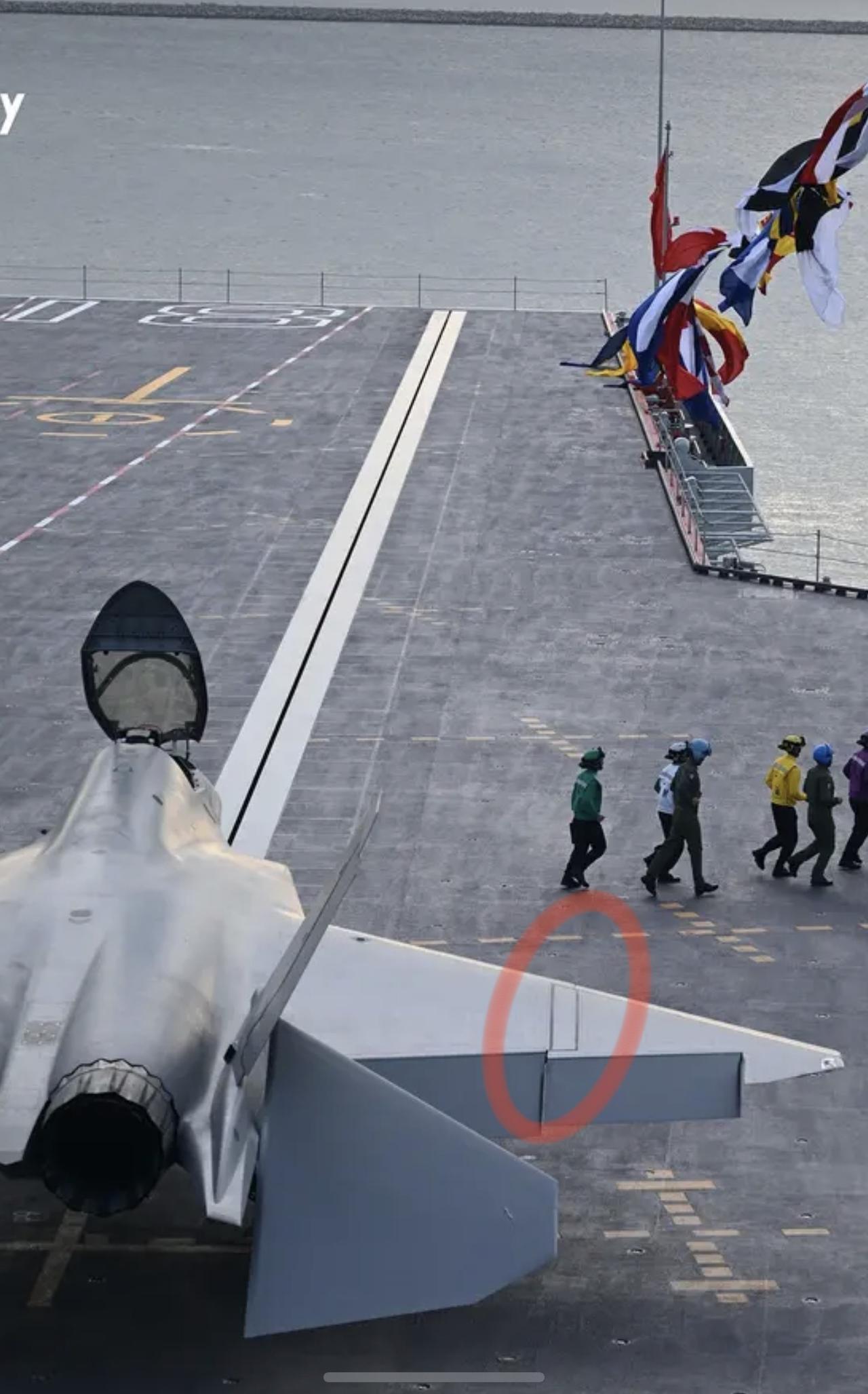 看图解毒。注意到图一中的EOTS光电瞄准系统是透亮的了,没有加保护罩的。座舱右侧有空中加油管的盖板,虽然不是硬管加油。进气道右侧上编号后两位是81号了…,相当于生产了多少架呢?飞机前起落架后面那个弹射限位拉杆,拉断限位销后被弹射起飞的,以前认为限位销是一次性的,后来说是改进款可以重复使用的了。图二机翼折叠部分,是三折叠嘛?怪不得去年航展上歼十五大方展示了折叠机翼部分,歼35使用了全新设计的折叠轴下沉式机构。这样会使折叠后的翼展更紧凑了,起码短了两倍机翼厚度呢。为我们的航空设计师们点赞👍!(网图)