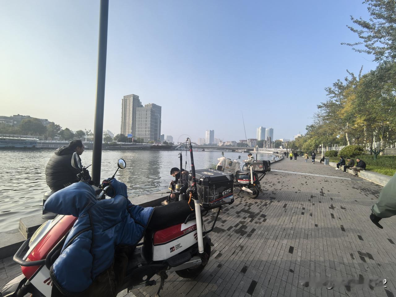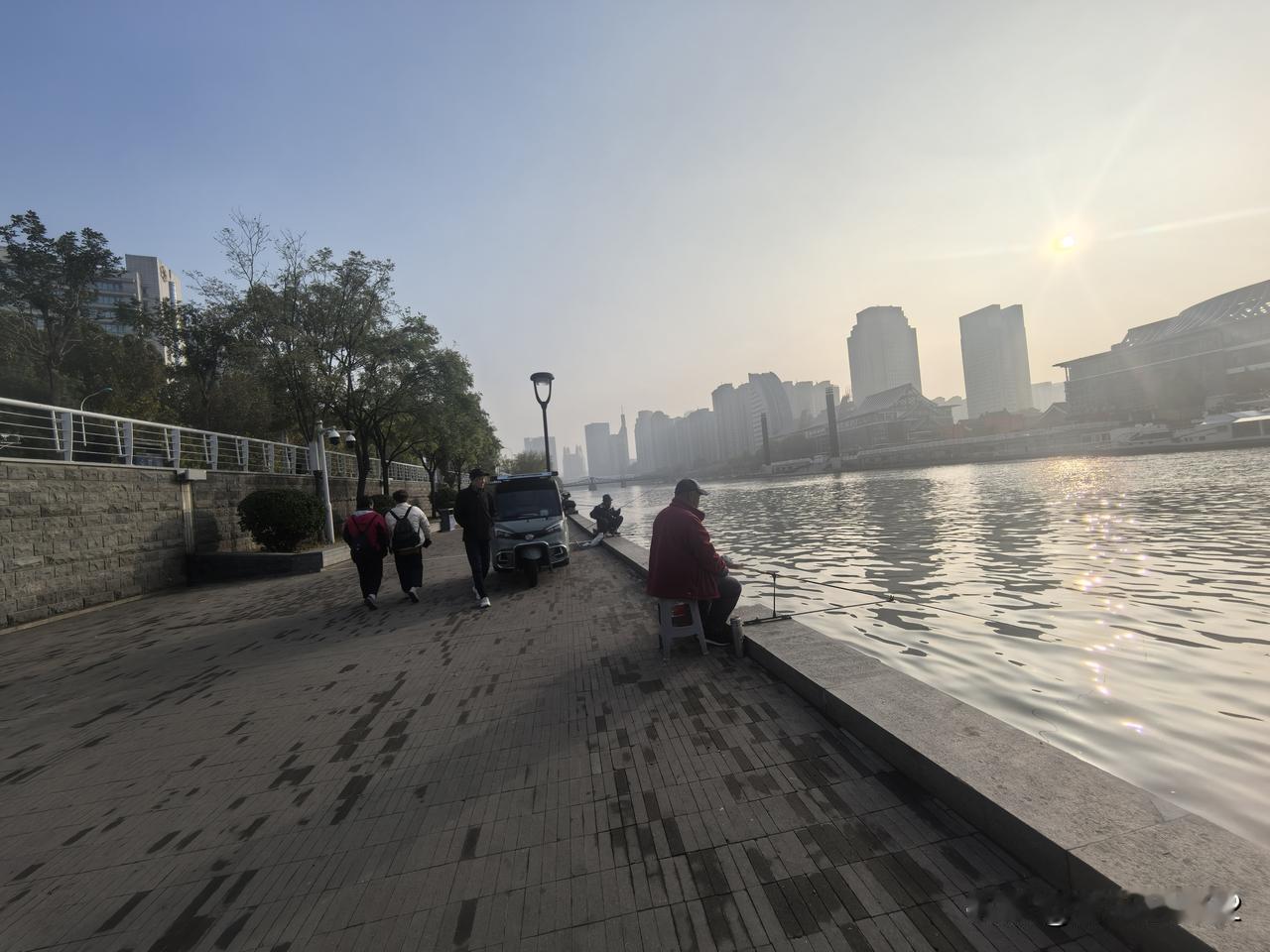 天津海河边的钓鱼爱好者还真不少呢!这是我在海河边散步时拍到的。 这些钓鱼爱好者迎着寒风,全神贯注地注视着钓鱼竿… 但是,我遇见的几个垂钓者都没有钓到大鱼,他们眼前的小水桶里,几乎全是一些手指长的小鱼。 尽管这样,他们还是那么专心致志地凝望着钓鱼竿… 这么寒冷的天气,难道他们不怕冷吗? 我真佩服他们的毅力。天津城市打卡