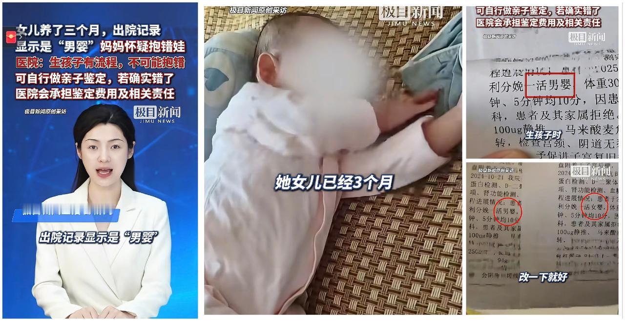 海南女子发视频自己养了3个月的女儿,出院记录上写的“分娩一活男婴”,女子怀疑自己抱错了娃,可医院坚决不承认“生孩子有流程,不可能出错”,当时的涉事医生说“肯定是打字打错了,改过来就是了”,一顿沟通下来,院方说“你们可以自行去做亲子鉴定,如果非亲生,院方会负责到底”! 有网友说“妈妈知道啊,刚生出来,会抱来给你看,告诉你性别,顺产是这样,剖腹产也给看,但确实存在手术过后眼模糊花看不清”,这位妈妈很有可能当时没有太注意,但这打错的性别,确实容易在人家妈妈心里种下怀疑的种子。 医院的说法是“若确实错了,………”,而不是你只要去做,医院都承担这次的亲子鉴定费用,如果医院不写错 ,人家也不会怀疑 ,也不需要去做了啊? 医院如果有底气,那就直接给人把亲子鉴定费用出了,家长也没什么话好说了,对吧? 如果女子鉴定后确实是自己亲生孩子,删视频给医院道歉,这样处理不是更好吗?