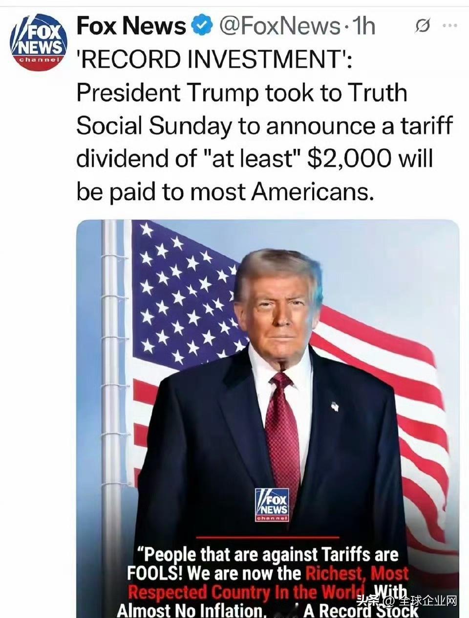 特朗普宣布给每个人发放2000美元,作为关税分红 特朗普这招的确高,利用真金白银将美国广大的底层捆绑上了自己的关税战车。 现在最高法院如果叫停关税,那么按特朗普的脾气2000美元肯定不发然后转头就把锅甩给最高法院,让9位大法官面对几千万群众的怒火,哪个大法官也不敢。 民主党议员要是敢批评,他肯定不敢,美国现在中产阶级急剧萎缩,选民结构从锤纺型正在向金字塔转变。民主党的选民更需要这笔钱。 最后承担这一切的还是美国中产和那些进出口企业,没事小资产阶级天生具有软弱性,他们还可以接着被压榨。