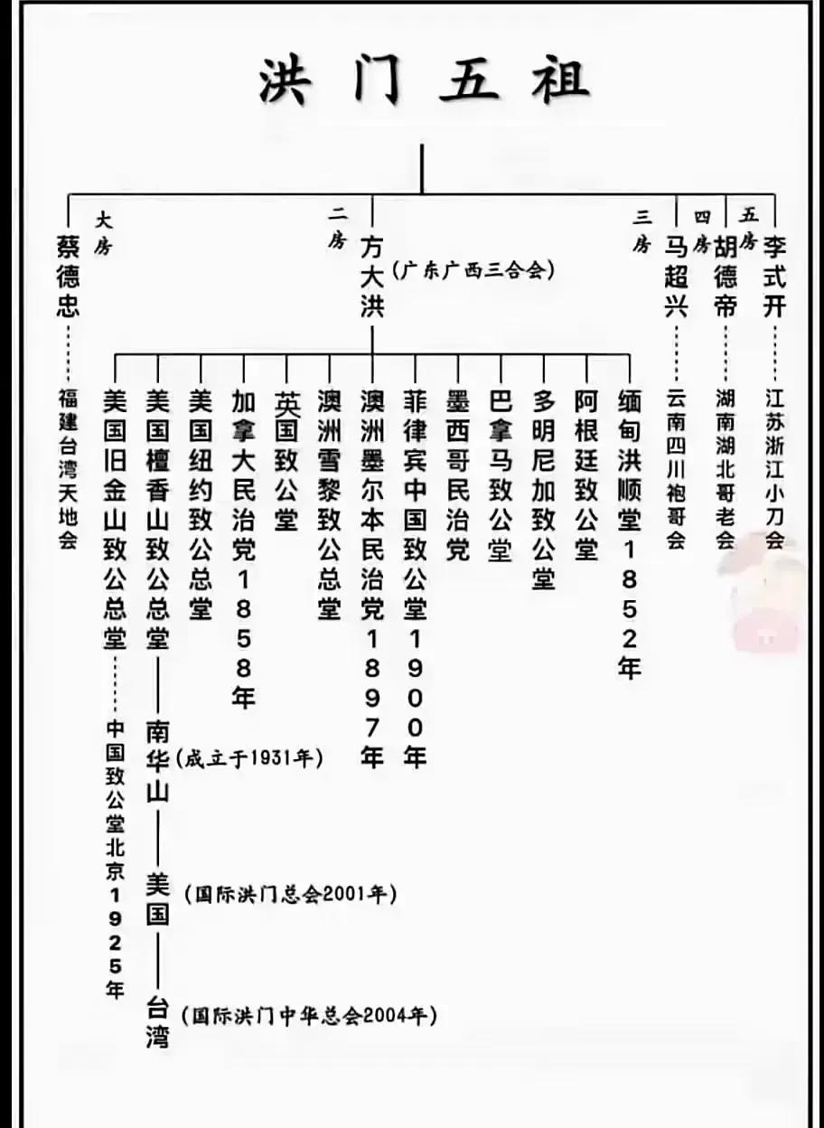 洪门五祖创始人姓氏分别是蔡、方、马、胡、李