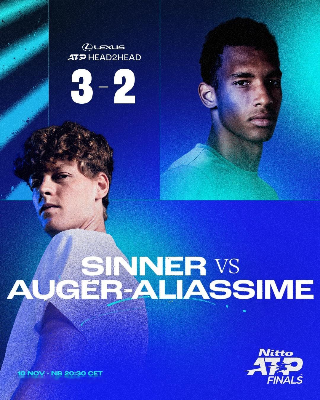 ATP总决赛 小组赛首轮最后一场开打,辛纳交手记录3-2领先阿利亚西姆!
