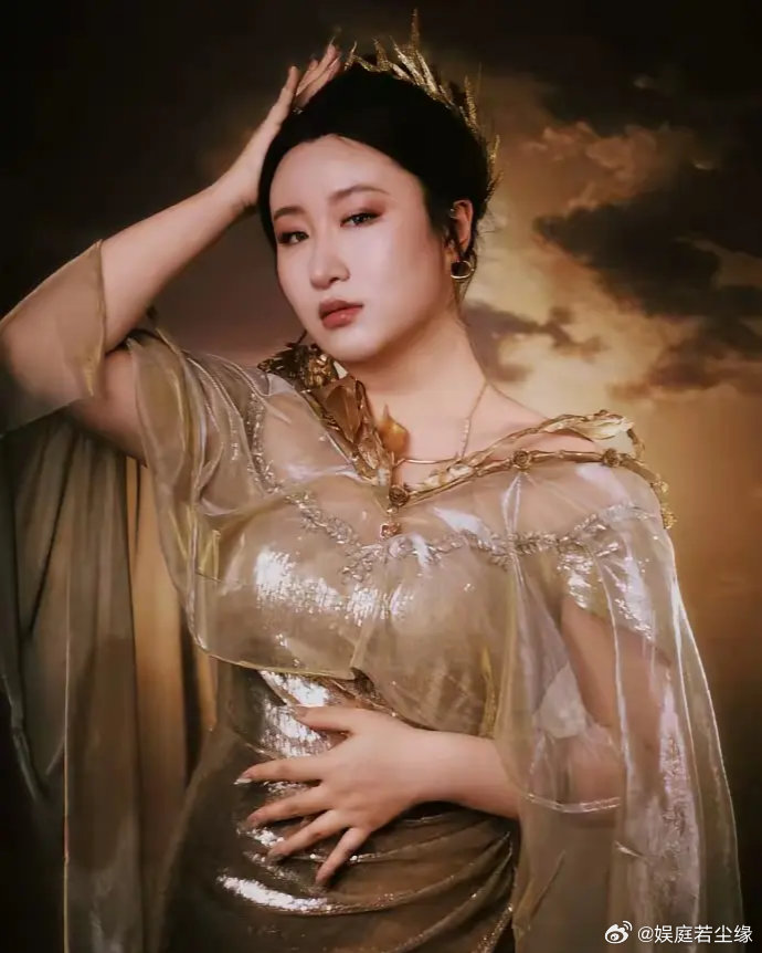 瘦了30斤的锤娜丽莎穿着金色礼服亮相。李川全程配合她的步伐,孔雀造型西装格外抢眼。