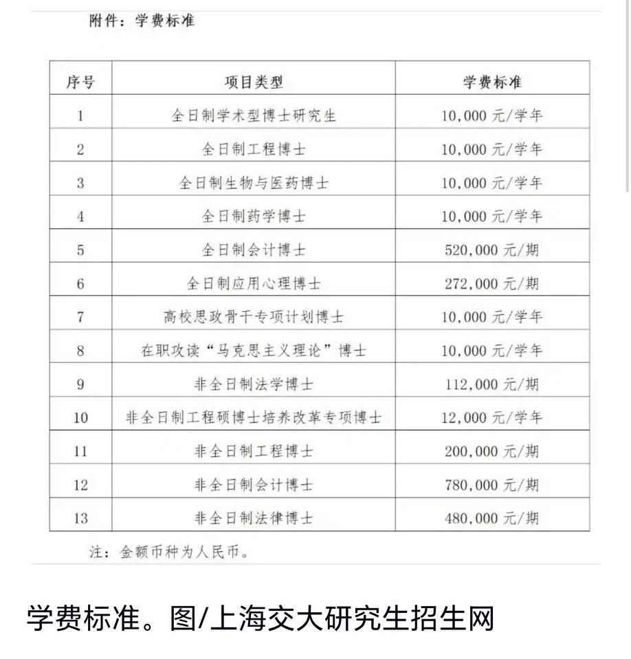 上海交大78万“天价”学费惊掉网友下巴。10月上海交大发布的2026年招生简章里,非全日制会计博士78万。11月学校回应,这是4到6年的费用。可就算平摊下来,一年也十几万,普通家庭实在难以承受。其实专业型博士本就是面向在职人员,企业出钱供员工读博,靠企业合作培养。 A网友:这不菲的费用,不是以培养人才为目的,纯正的做生意赚钱,另一方面也是有目共睹,这种招生是针对哪些人群,妥妥的非正常畸形文凭生产基地,难怪文凭贬值,这也是原因之一。但愿国家能出手管制杜绝这种现象的继续。 B网友:请注意,是非全日制!这是给企业高管开的,和商科MBA一样,是给上市公司财务总监深造用的。 C网友:这是非全,是给那些事业有成的职业人读的,专门留给富豪们进修的,普通学生除非家里有钱,不然只能读全日制的。正常人谁读非全日制博士啊?78万太少了,得780万。 普通家庭孩子辛苦攒钱,可能连硕士都难读完,这公平性就很让人质疑。再看招录方式,普通博士是校内优秀学生,非全会计博士招社会人士,这差异也挺大,真让人忍不住吐槽。