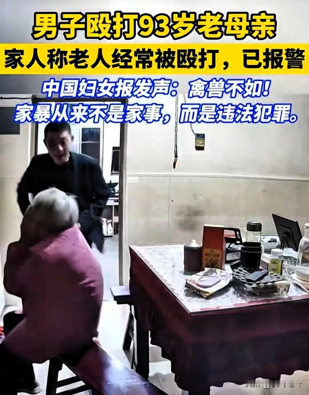 男子殴打93岁老人的事查出结果了,已经不是第一次殴打,这是这次曝光殴打得更严重。 据老人女儿爆料,哥哥长期独自承担照顾母亲的责任,日复一日的琐碎照料慢慢积压了不少压抑,加上常因生活习惯、饮食起居等小事和老人起争执,他竟把所有怨气都撒在了年迈的母亲身上。 这早已不是第一次动手,只是之前没被曝光,而这次的殴打格外严重,才让人看清这场“孝顺”背后的残酷。 网上有人拿“不经他人苦,莫劝他人善”为施暴者辩解,可这话在殴打亲生母亲这件事上,根本站不住脚!谁都承认独自照顾老人的不易:要时刻留意饮食用药,要打理吃喝拉撒,长期的体力消耗和精神压力,确实容易让人身心俱疲,甚至偶尔情绪崩溃。 但再难、再累、再压抑,也不能把拳头对准生你养你的母亲啊!93岁的老人,别说反抗,就连躲闪的力气都没有,每一次动手,打的都是母子间几十年的情分,碎的都是做人的底线。 其实解决办法从来都不只有“硬扛”:可以找兄弟姐妹协商轮流照顾,分摊压力;也能向社区、街道求助,申请居家养老帮扶;条件允许的话,请护工搭把手,或者选择合适的养老机构,哪一条路都比动手打人有底线。 母亲十月怀胎含辛茹苦把他养大,从襁褓婴儿到长大成人,耗尽了多少心血?如今母亲老了、弱了,需要人呵护了,换来的却是亲生儿子的拳头,这不仅是大逆不道的不孝,更是触碰法律红线的恶行,必须受到应有的严惩! 照顾老人的辛苦值得被理解,但绝对不能成为施暴的借口。做人的良心不能丢,对待至亲的底线不能破,向生养自己的母亲动手,无论如何都无法被原谅。