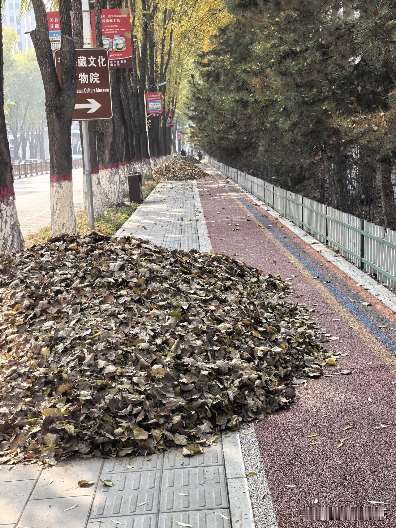 这两天的西宁街头惊现奇妙一幕,当防尘车缓缓驶过,树上的树叶仿佛被唤醒,大片大片地簌簌飘落,犹如一场突如其来的金色雨幕,美得让人屏息。 在城北生物园区藏文化广场,环卫工人们正忙碌着。他们手持鼓风机和扫帚,将树叶轻轻吹拢成堆。这些调皮的金色精灵随风起舞,虽然美不胜收,却给城市保洁带来了挑战。 感谢这些默默付出的城市美容师!正是他们的辛劳,让我们在欣赏落叶之美的同时,也能享受整洁的市容。快来西宁街头邂逅这场限定的金色浪漫吧! 这个初冬,不妨放慢脚步,在欣赏落叶之美的同时,也为默默守护城市整洁的环卫工人们点个赞! 西宁街景 冬日生活打卡季