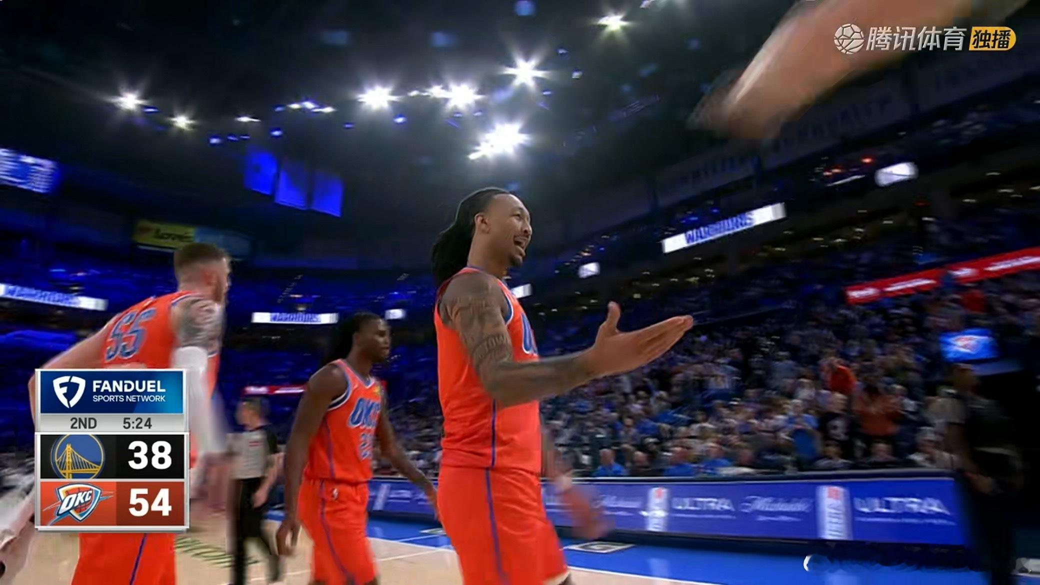 杰林-威廉姆斯三分命中打停勇士,雷霆已领先16分。本场雷霆三分12中8,命中率66.7%🔥