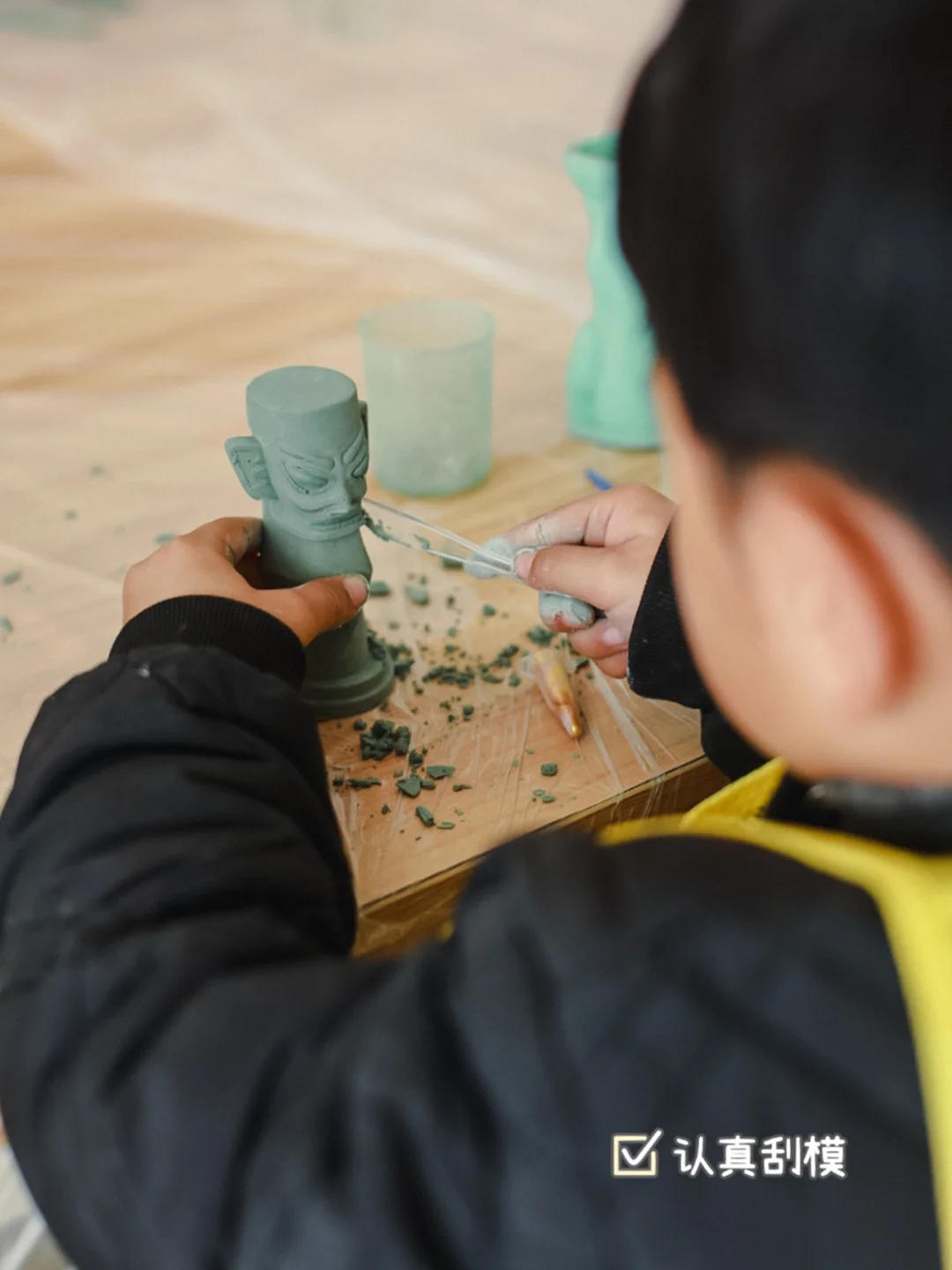 ✅建议五岁以上的孩子参加,太小了听不太懂,也不太会制作青铜人和玉器